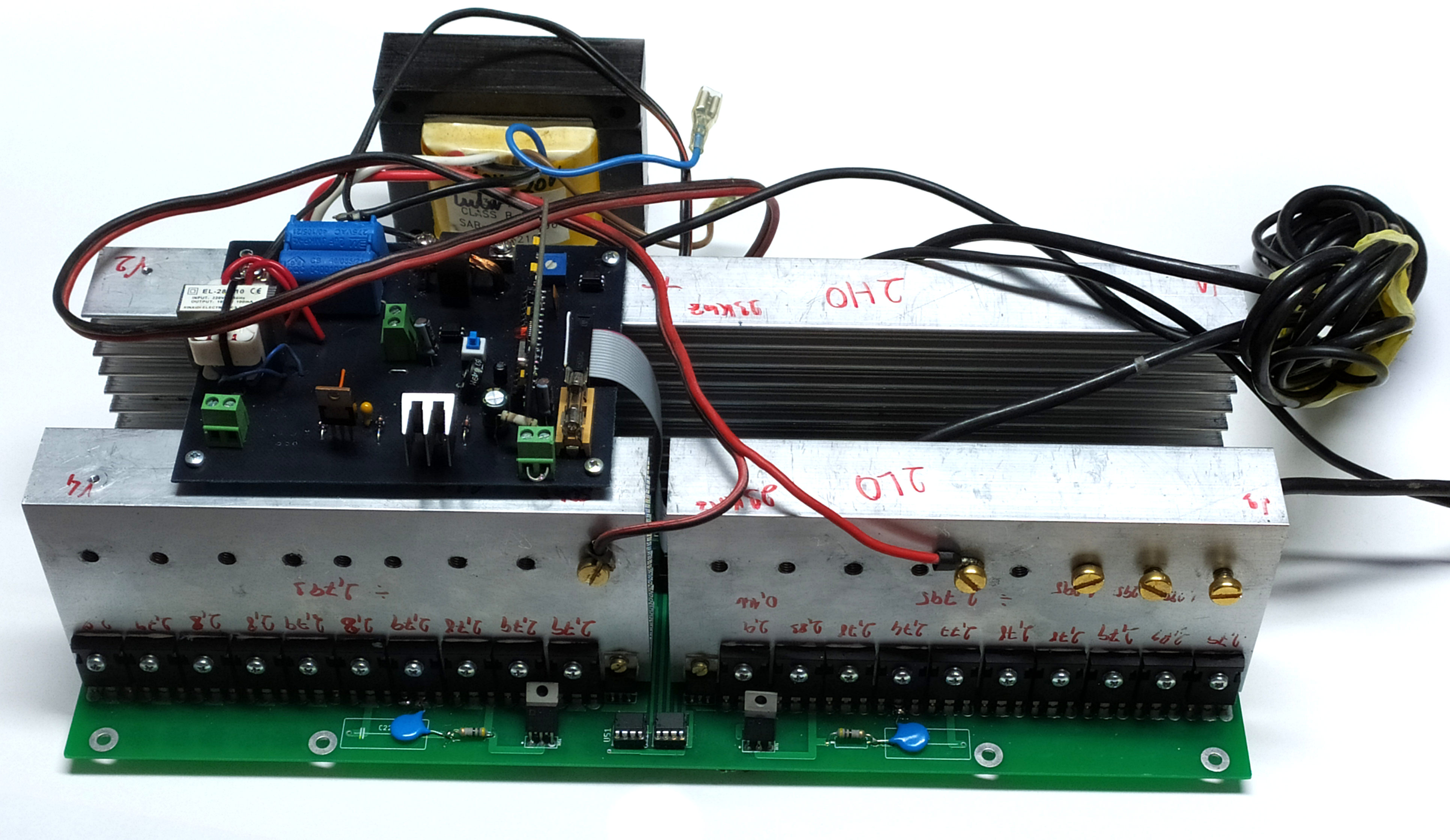 ještě jsem loupl HY4008,zdají se být masivní. Zatím jsem se dostal na nějakých 80A při 28V pak mi začínají omezovat IR2127.Musím změřit ůbytky na tranzistorech a nebo se mi tam indukuje nějaký bordel a ovlivňuje se to(trafo toroid 4Kw).