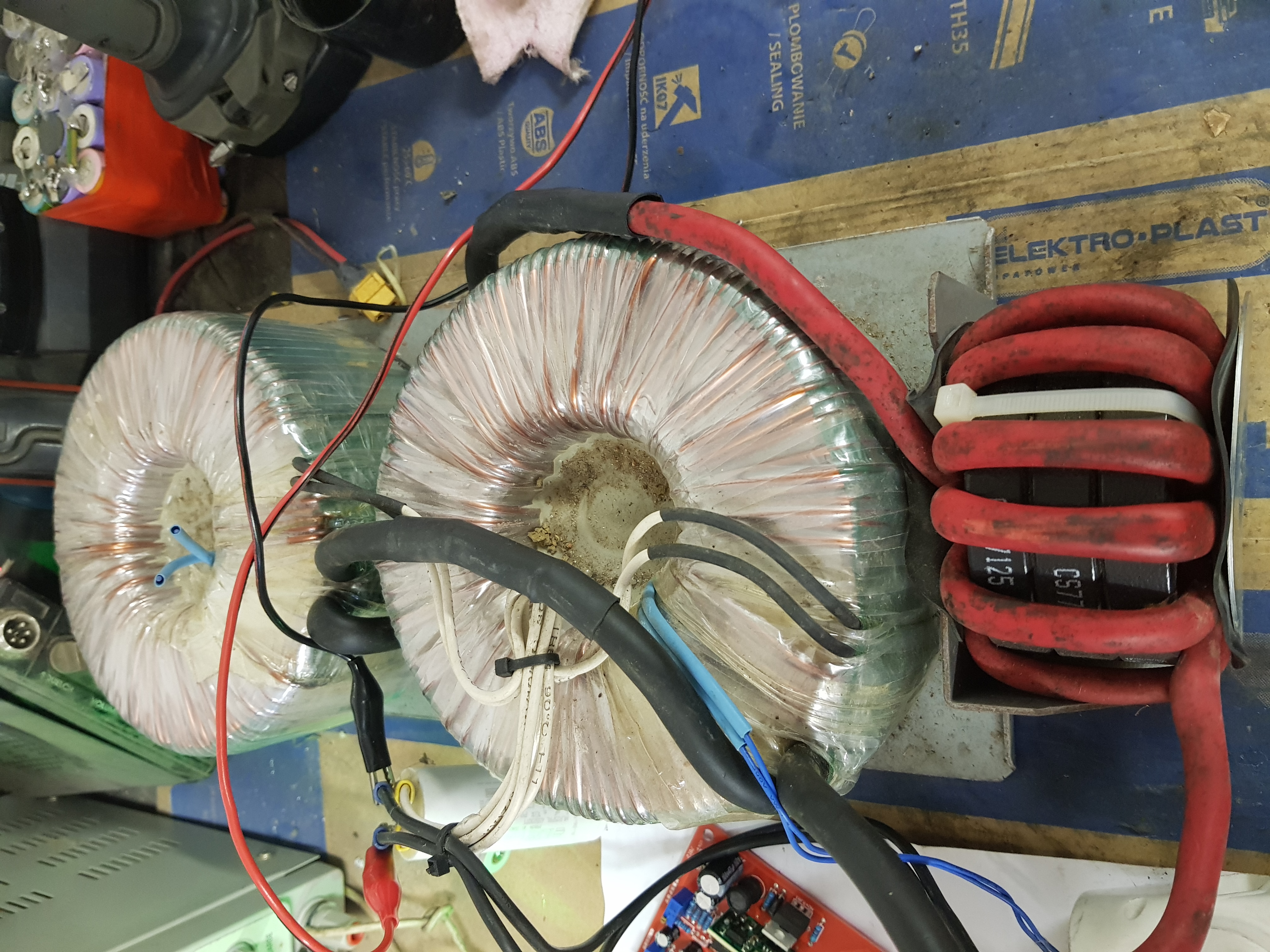 Ano, trafa vyzera ze su vyriesene. Skusim do buducna este odniekial zohnat vykonnejsie trafo aby nemuseli byt 2ks spajane, ak to bude dobry pomer cena/vykon. Cakam na lacnejsiu verziu tochto cinskeho invertora bez posilnenia budenia a postavim z tych mensich 2500VA traf 2 samostatne invertory. Skusim tam nejake hranicne stress testy.. co to znesie (predsa len lacnejsie komponenty na znicenie). Zvazujem moznost 2 invertorov.. Prvy slabsi ktory bude bezat jesen-zima (do 2,5kW) a tento druhy (7,5kW) osadim prifazovacou elektronikou, a v pripade odberu nad 2kW necham prifazovat vacsi menic a relatkom prepnut potom vystup pocas behu z 2,5kW na 7,5kW. Ale to je len taka myslienka. Predsa len nizsi kludovy odber na mensom a asi aj ucinnost vyssia. Uvidim podla merani.