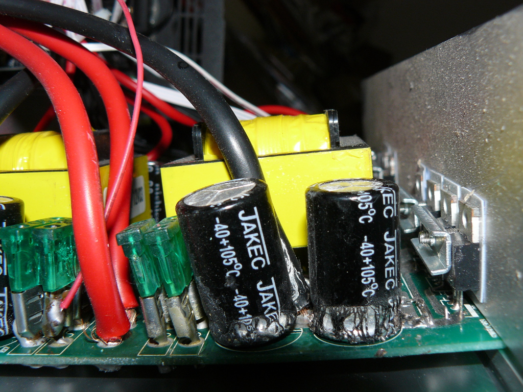Předpokládám, že výrobce levně koupil nějaké staré zásoby z oněch let, nebo ten elyt dostává ve střídači takový kotel, že to chudák nevydržel, nebo firma Jakec koupila starou výrobní linku z "oněch" let. Na pozici "zásobárny pro boost střídač", na které je evidentně osazený, jsem jiný typ kondenzátorů než elektrolyt nikdy neviděl, protože jiné technologie potřebné kapacity nemají. A "kotel" tam dostává zcela určitě, bývají tam vysoké teploty a brutální impulzy. Ale evidentně existují elyty, které to vydrží, na rozdíl od výrobků firmy Jakec