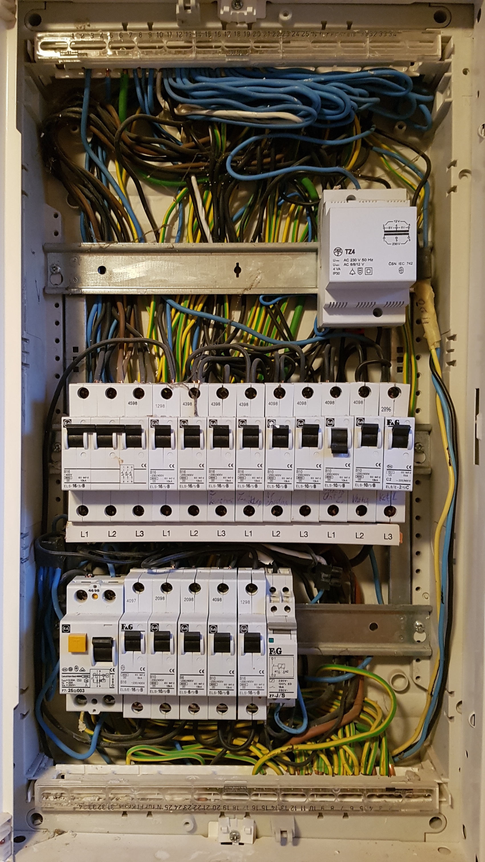 Chtěl odpojit i nulu, proto nemám PEN, ale z elektroměrového rozvaděče mně jde nula a uzemnění rozdělené. Do hlavního jističe a na nulový můstek jdou klasicky 4 dráty. Do elektroměru distributora pokračují tři dráty přes hlavní jistič plus nula pro jeho napájení. Na nulový můstek je ještě připojeno moje zemnění a z nej už jde rozdělná nula a zem do prvního domovního rozvaděče spolu s fázovými vodiči. Fázové vodiče a nula jde přes čtyřpólový vypínač.brumlaj píše:distributor chtěl i odpojení PEN? Zatím jsem nikde nezažil 5 drátů od distributora .......