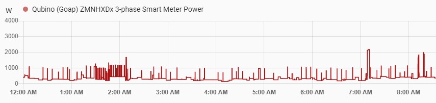 V domácnosti jsou 2 kombinované ledničky, AP, Router, NAS a další běžná elektronika ve stand-by. V 6:00 jsme evidentně vstávali