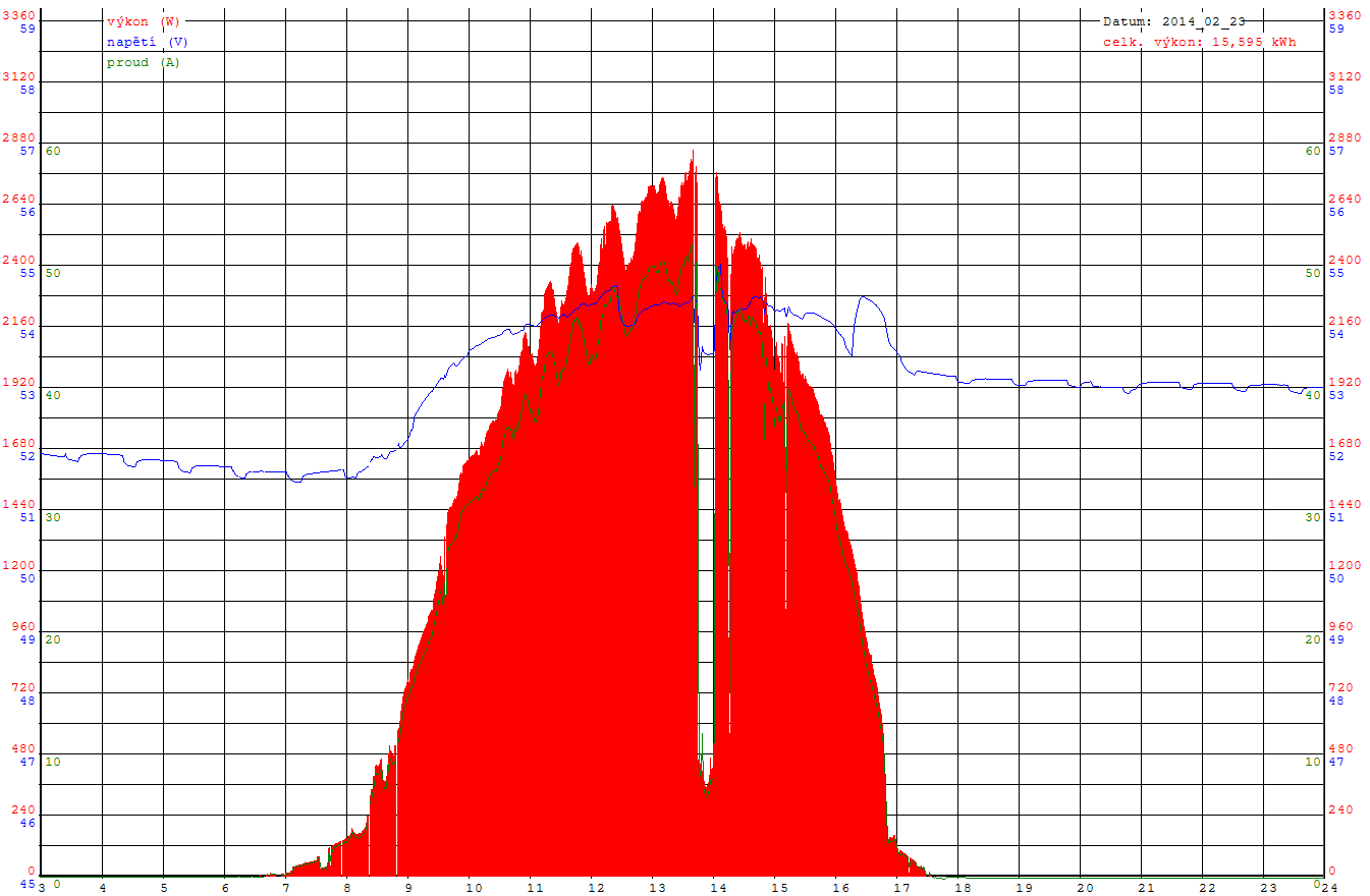 Letos je to hezčí než minulý rok, jelikož jsem schopen zpracovat celý výkon FV pole a díky vytěžovači na střeše nezůstane ani jedna watthodina.