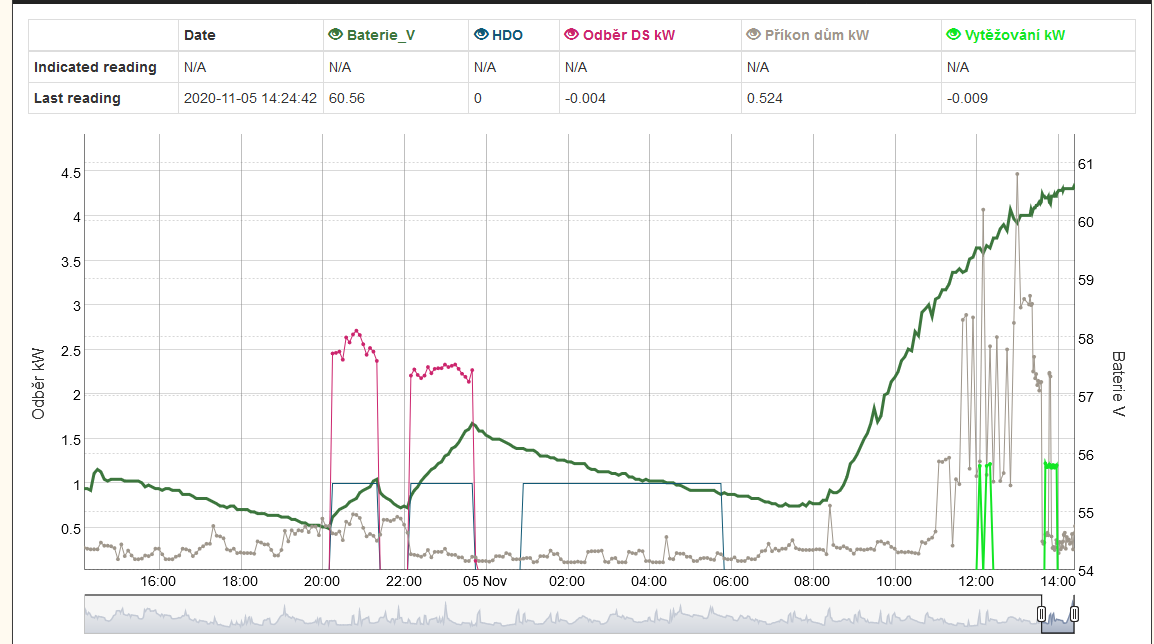 jj pěkně to dneska frčí. Automatické vytěžování do bojlerů jsem zatím manuálně vypnul, chci nabít baterku do plna. Dnes vytěžuje manželka na home office. Vaření, pračka, sušička, atd. Zítra už povolím automatiku.