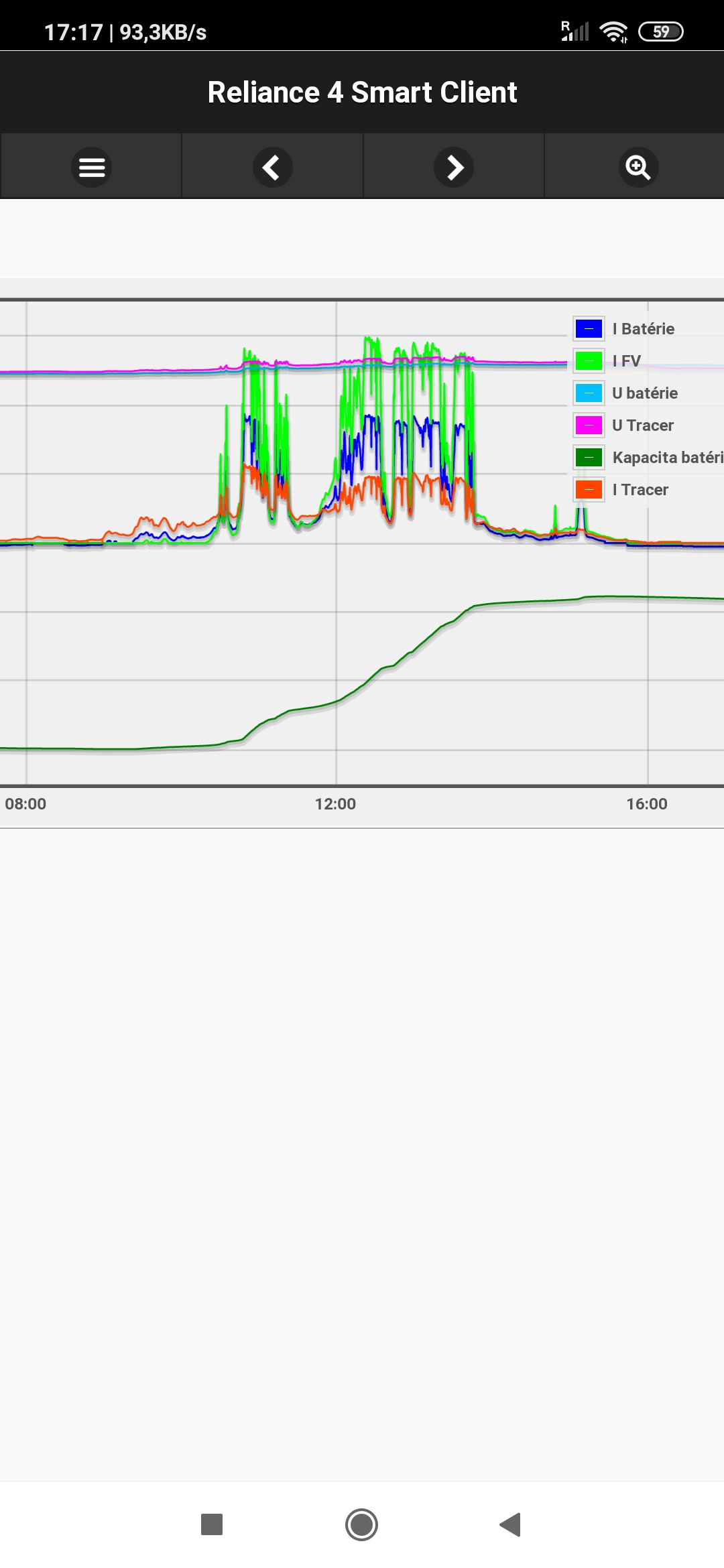 Taky jsem se dnes těšil na slunce a jasno, ale nebylo to nic moc - ale lepší než nic. Z pole na jih 1,7kWp to dnes dalo 1,339kWh, takže baterky jsou na 95% a taky jsem trochu spálil v přímotopu. Na ukázku obrázek z apky.