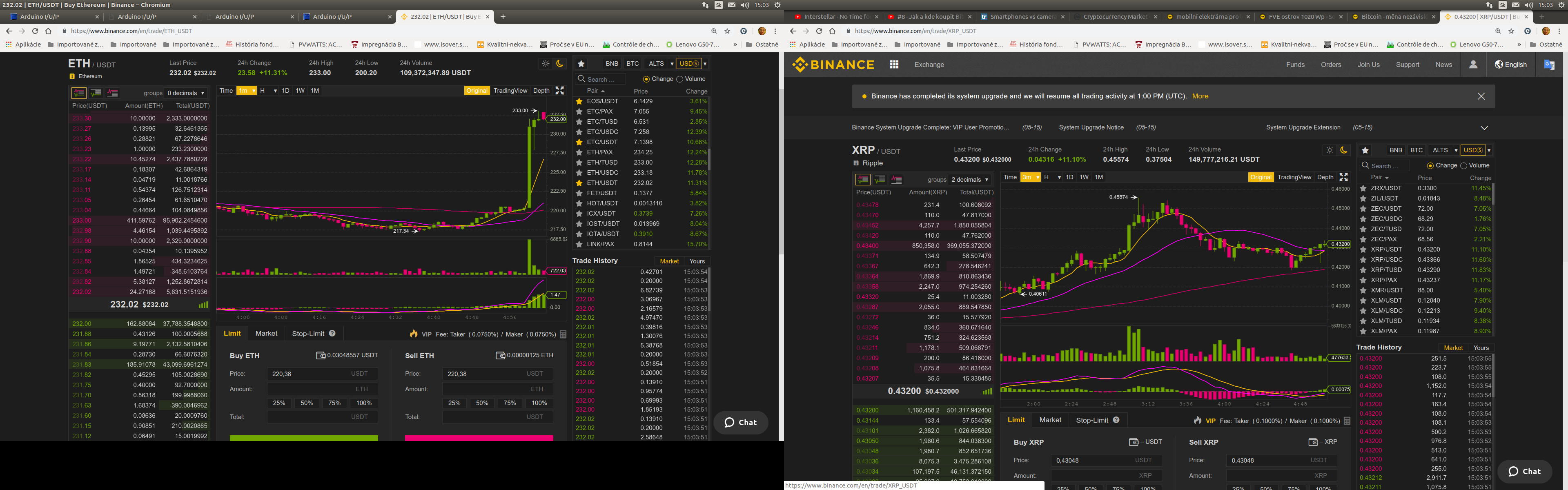 Včera nám BTC atakoval 8400 USD, dnes vyskočilo ETH na 229.