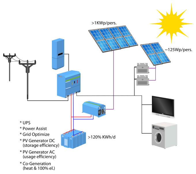 Deklarovaný koncept sebestačnosti je úplne chybný a falošný. Je závislý na všetkých spoplatnených zdrojoch - voda ( vodné + stočné), teplo ( fosílny zdroj ), záloha v elektrickej prípojke ( kogenerácia so zálohou v batériach to vždy nevytrhne ).