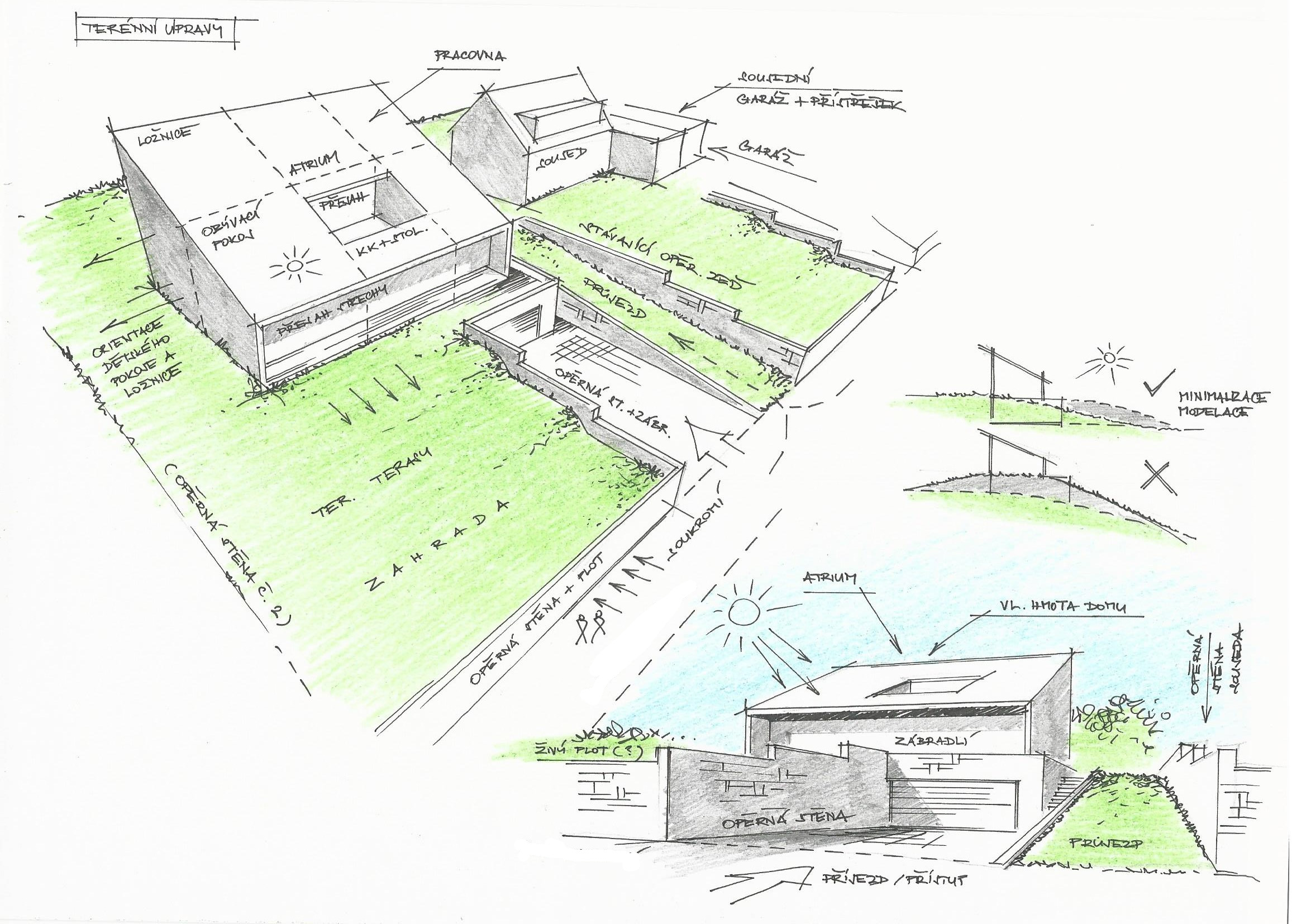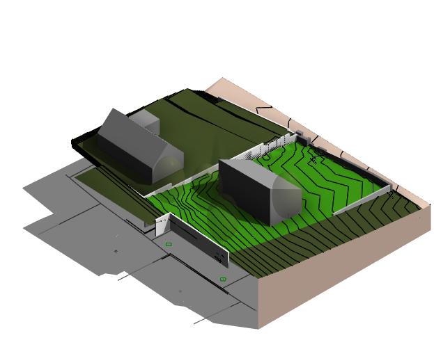 Je to vyexportovane z "modelu hmot" v Revitu ktery byl prvni na realnych datech elevace pozemku. Za to zase barak jen plusminus.