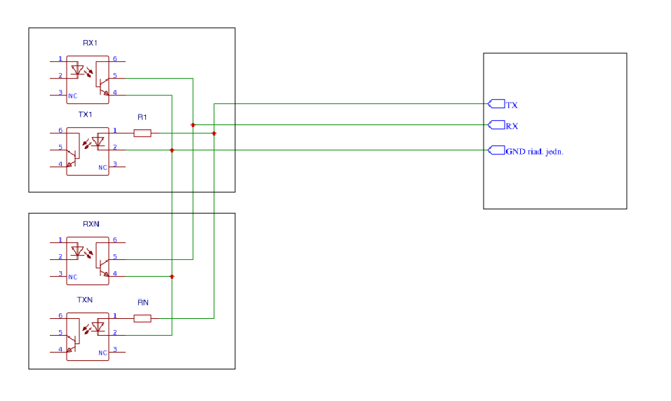 Vsak myslim priamo na clanku 2 optocleny, jeden pre RX a druhy pre TX. Nieco taketo