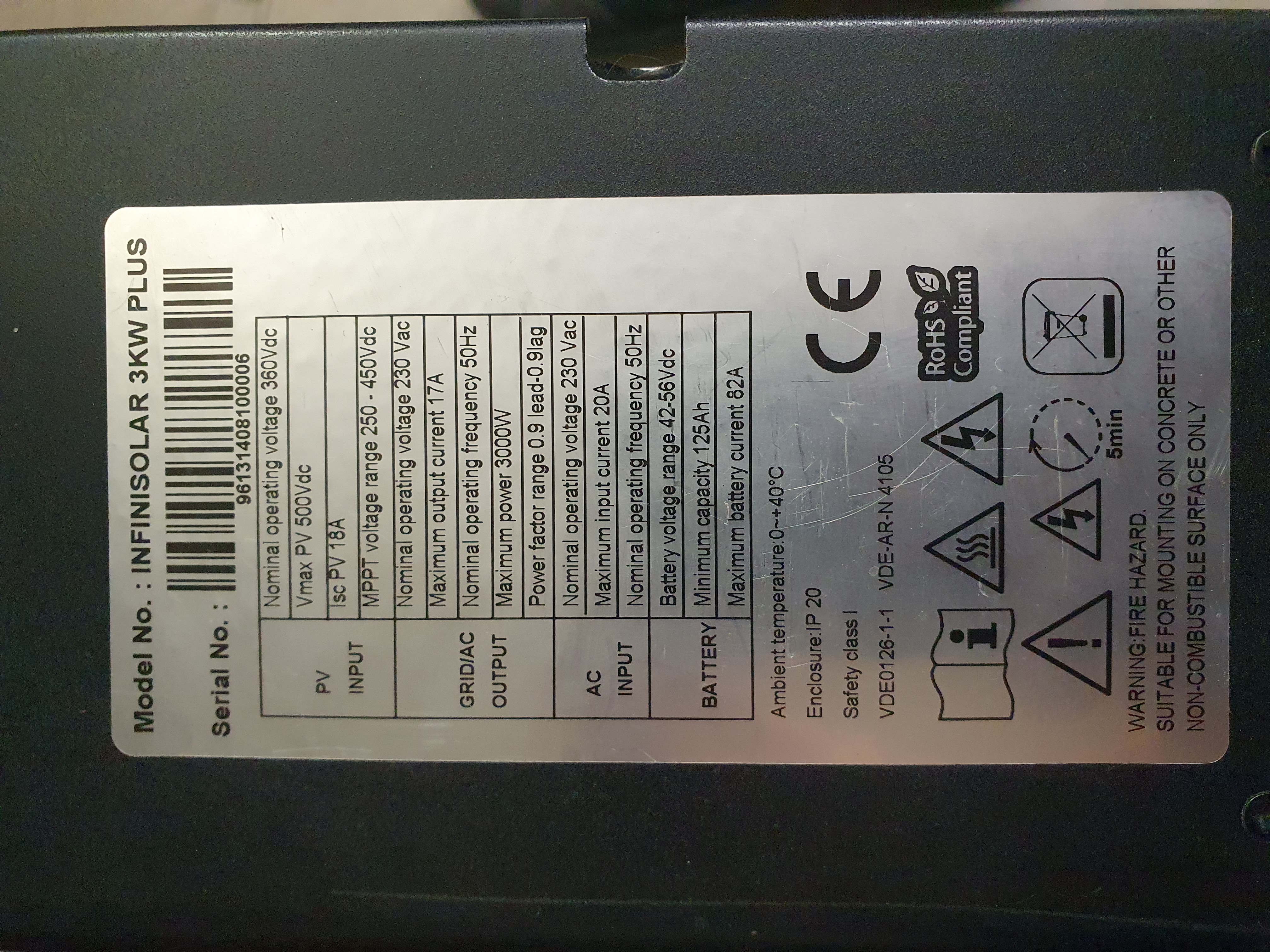 Měnič infinisolar 3k Plus - parametry viz. štítek. v provozu cca 3 roky