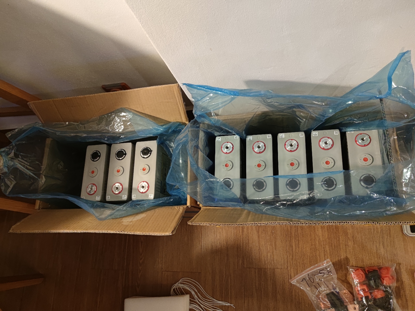 Přátelé, tak i mě konečně dorazily CALB 8 x CA180 včetně smart BMS a propojek z ALI. Objednané 1.8. za cenu 1130$.