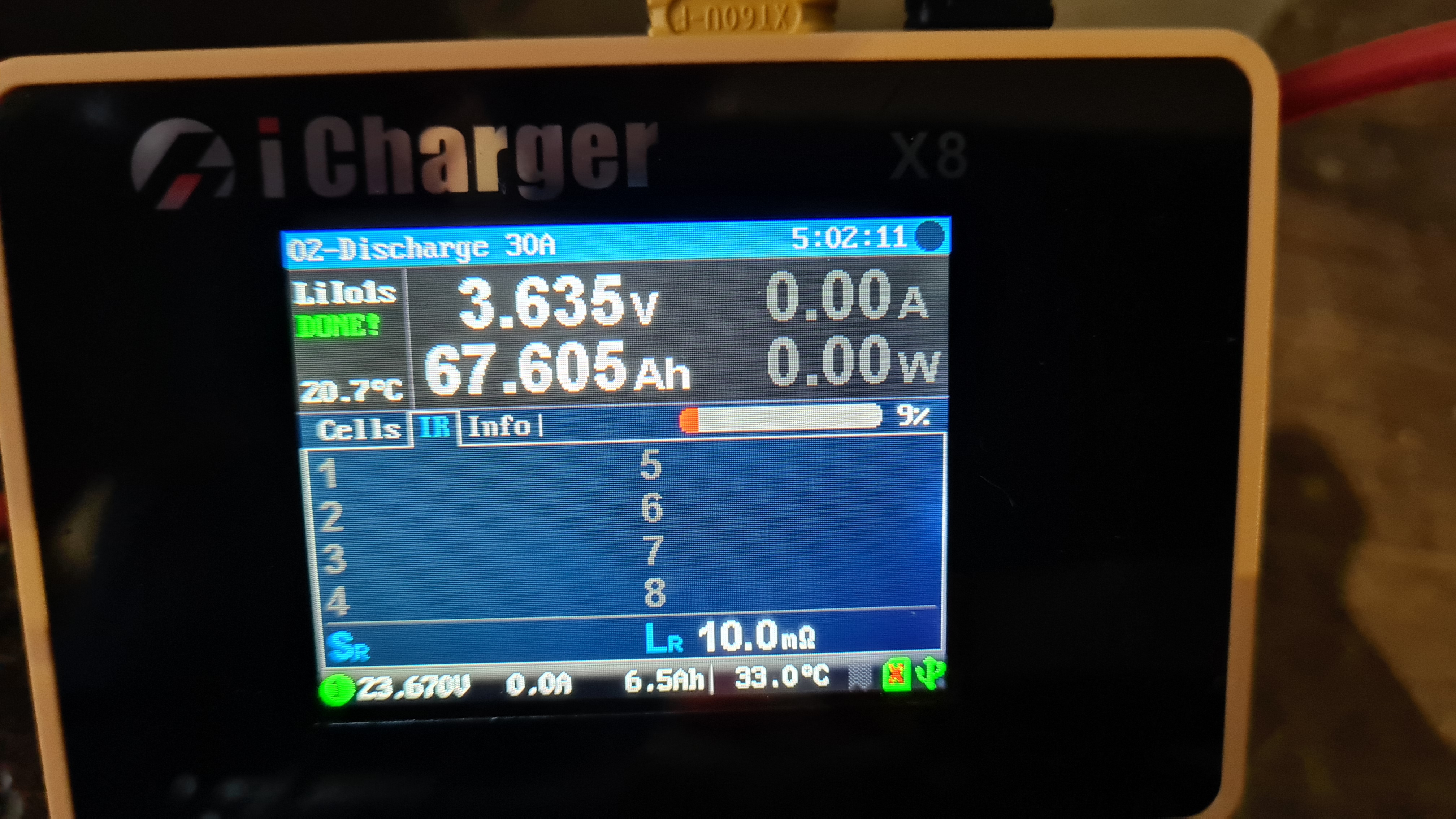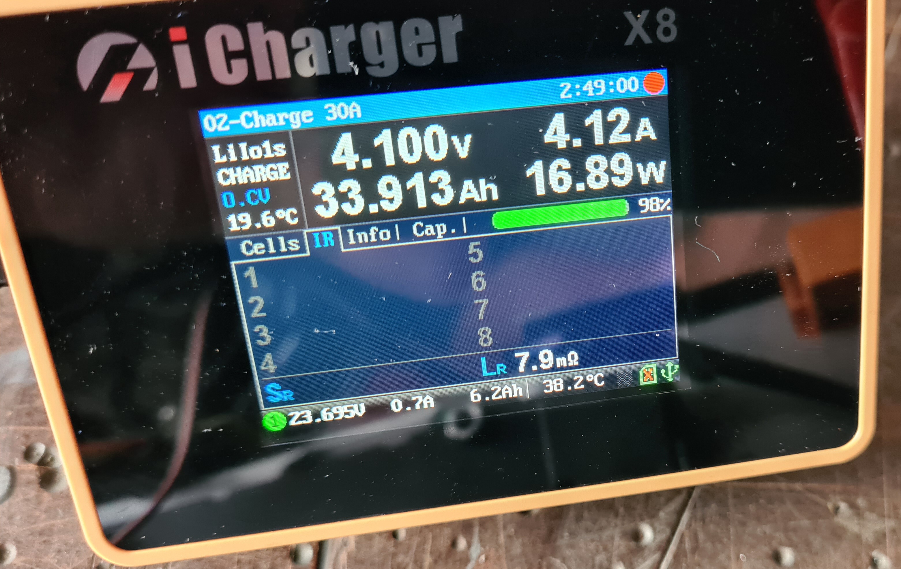 jak jsem některým slíbil, provedl jsem měření jednoho článku. Hodnoty jsou, bych řekl, více než uspokojivé. Vybíjení probíhalo z předchozího nabíjení z cca 3,8V na 4,1V (je také na foto) a bylo nastaveno na Umin 3,5V (bohužel jsem si tohoto nastavení všimnul pozdě a nelze jej měnit v průběhu měření, celé to je na několik hodin). Kdyby měl někdo extra zájem provedl bych vybití na nižší hodnoty. Z tohoto měření vyplývá, že články mají reálně kapacitu 130Ah a víc... Cena za celý pack je 18tis. (18článků). Pokud by někdo chtěl jednotlivé články jsem ochoten pack rozdělat. Dotazy zodpovím PM nebo zde... mám i pár článků 50Ah, ale ještě jsem je nekontroloval...
