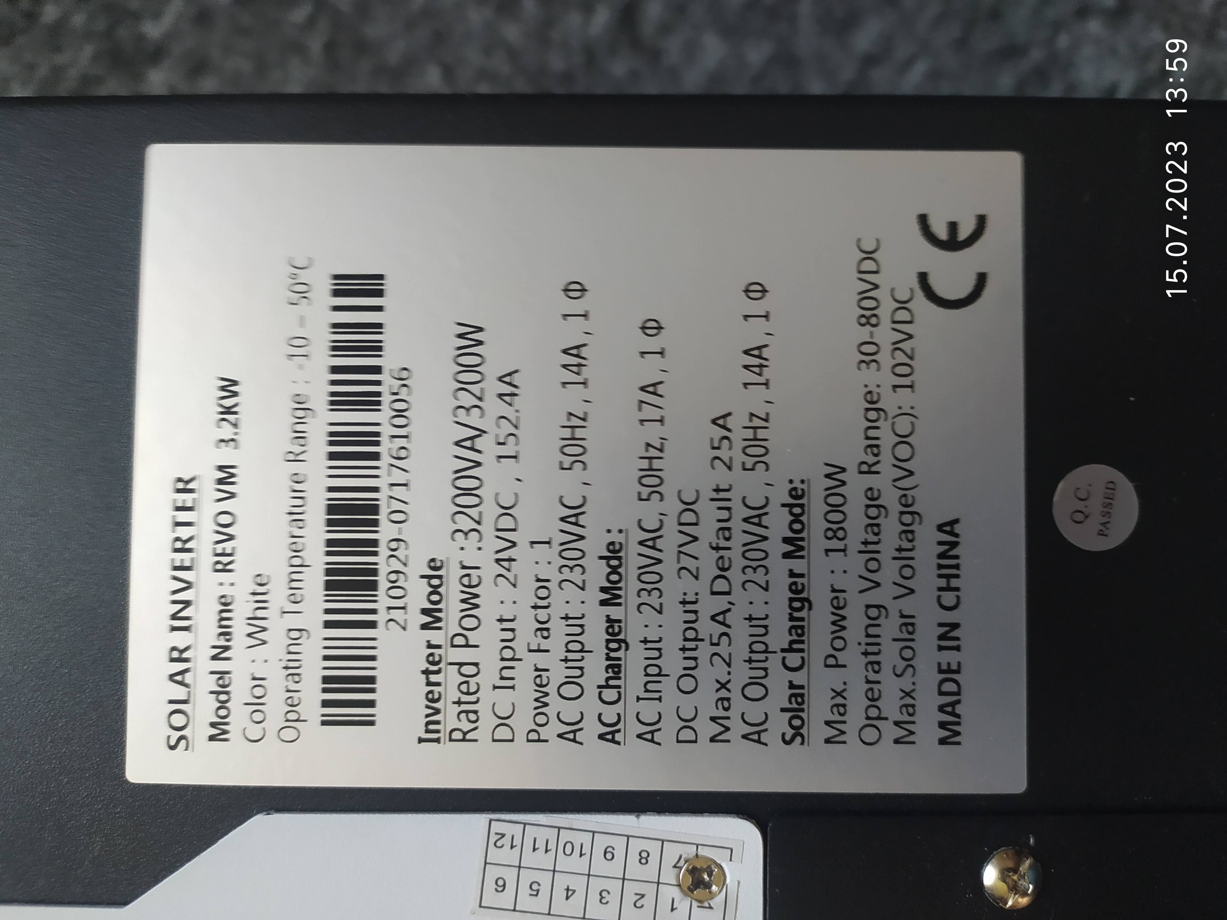 Nabízím k prodeji měnič REVO VM3200-24 s čistou sinusovkou a výkonem 3200W, vhodný pro 24V baterie a solární panely s MPPT regulací. Displej byl opraven v servisu Hadex, připojení k PC je možné přes RS232. Cena je nyní 8000 Kč, osobní převzetí možné v Olomouci nebo Zlatých Horách. K měniči je k dispozici originální návod včetně českého překladu.