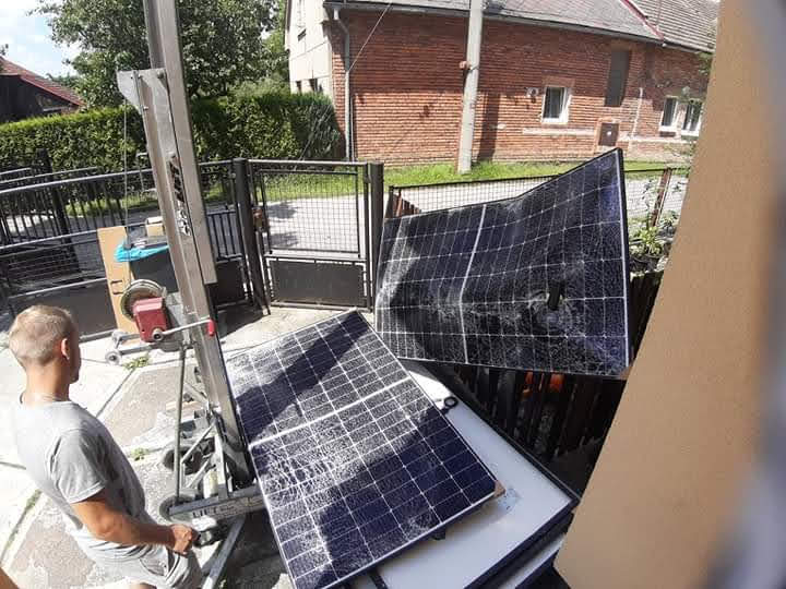 Co se týká práce, dá se to udělat i tak že to hodíš na hrb a jdeš s panelem sám ale nesmí foukat. Já takhle dělal 2 panely a nebylo to dobrý. Je to lepší ve 4 lidech. 2 na střeše a dva dole. když jich tam potřebuješ nasekat 18 za dopoledne je potřeba aby každý dělal to co je nutné....
