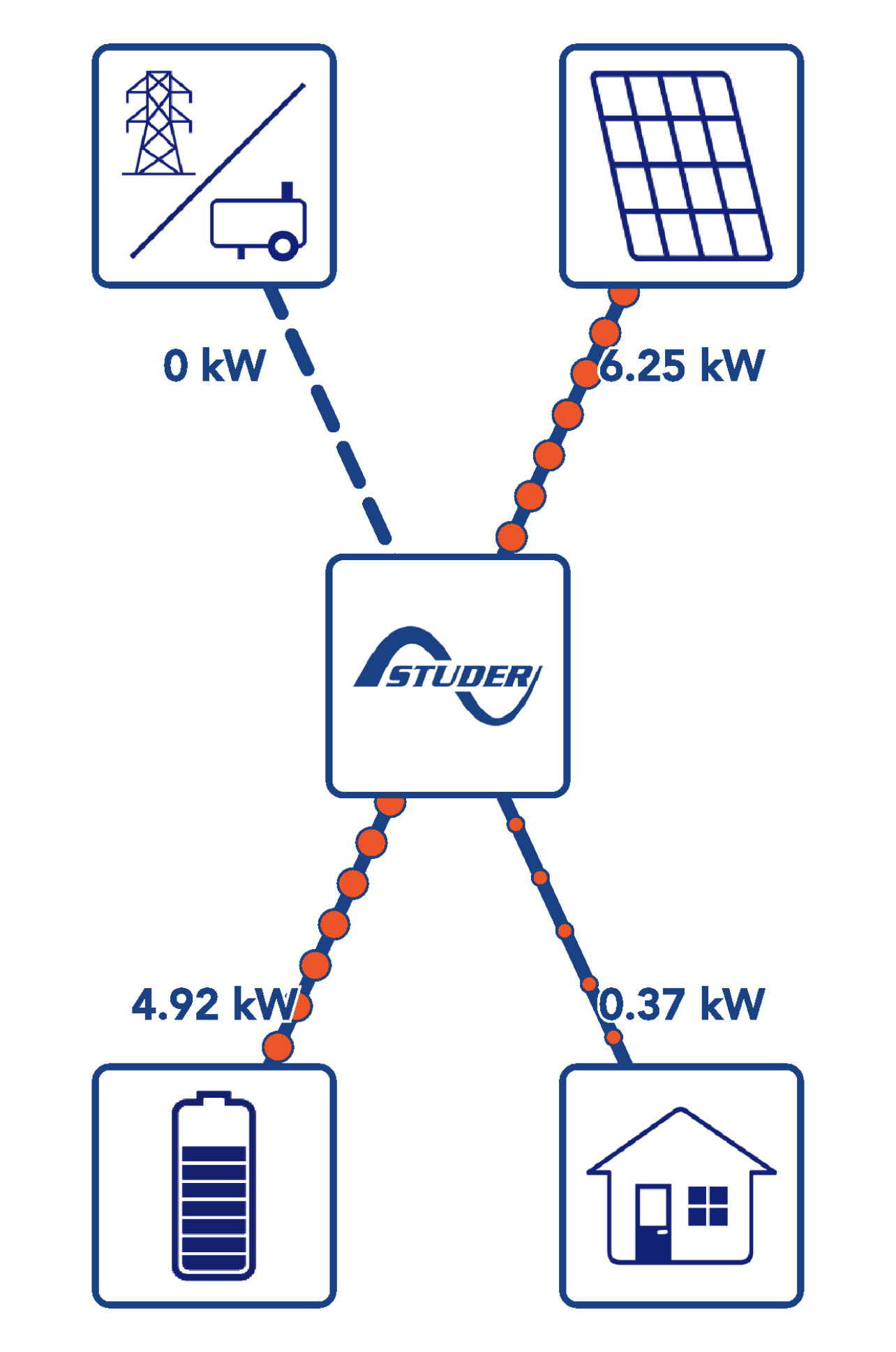 Tak dnes jsem ukončil ostrovní provoz FVE. Aktuálně mají aku SoC 30%.
