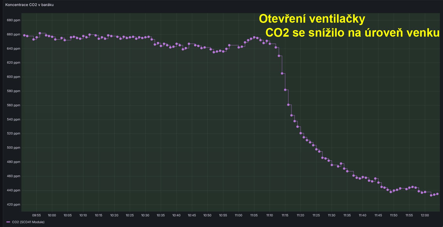 Zkusil jsem použít ke sledování kvality vzduchu v baráku snímač CO2 (SCD41).
