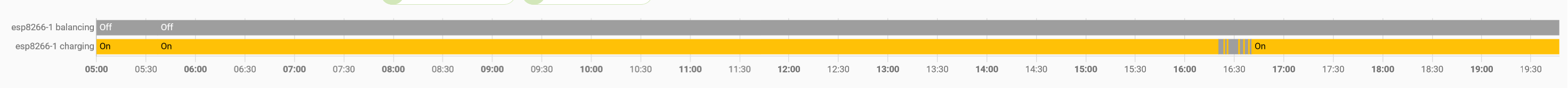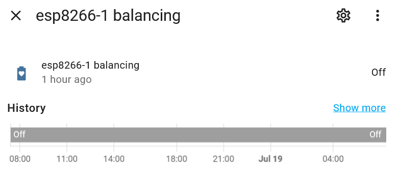 Z komunikace dle https://github.com/syssi/esphome-jk-bms, kde je i tato informace posílána. U BLE varianty to bylo jako hodnota balančního proudu, u UART-TTL verze, na kterou jsem už před nějakým časem přešel je to jako binární hodnota ON/OFF. Data se ukládají v HomeAssistant do influx databáze, takže se mohu podívat i zpětně. Ostatní balancují, tato ne. Z toho včerejška - jedna balancuje :