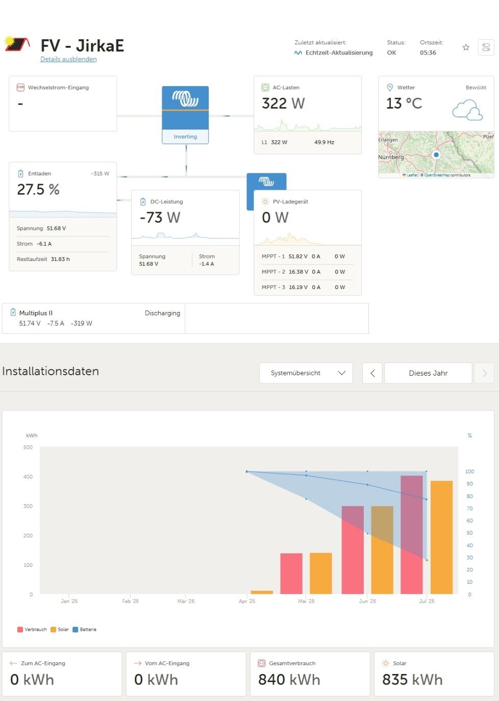 Já odpojil konečně Balkonovku která v tom stále dělala zmatek a musel jsem to hlídat a nyní jsou ty dva panely na novém MPPT - 3