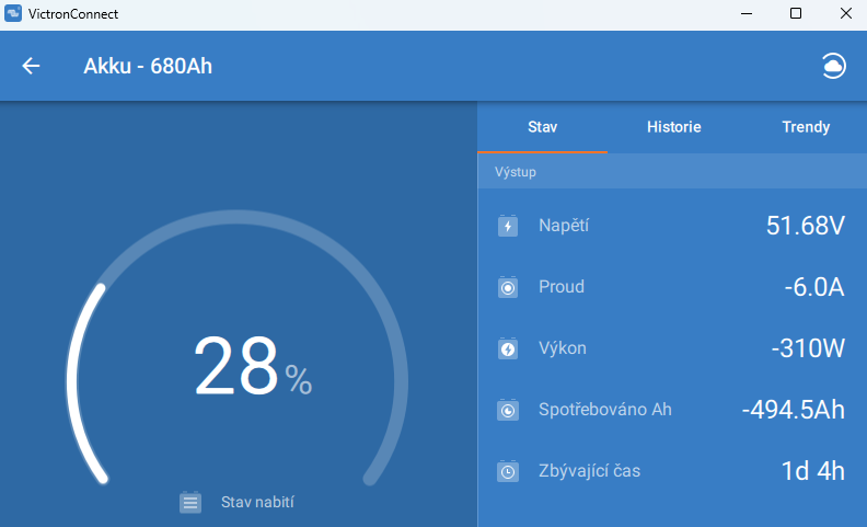 Baterka už pozvolna byla dnes i na 35% a pokud nevykoukne víc sluníčka, jsme v řiti a budu muset zapnout DS a nabíjet ze sítě