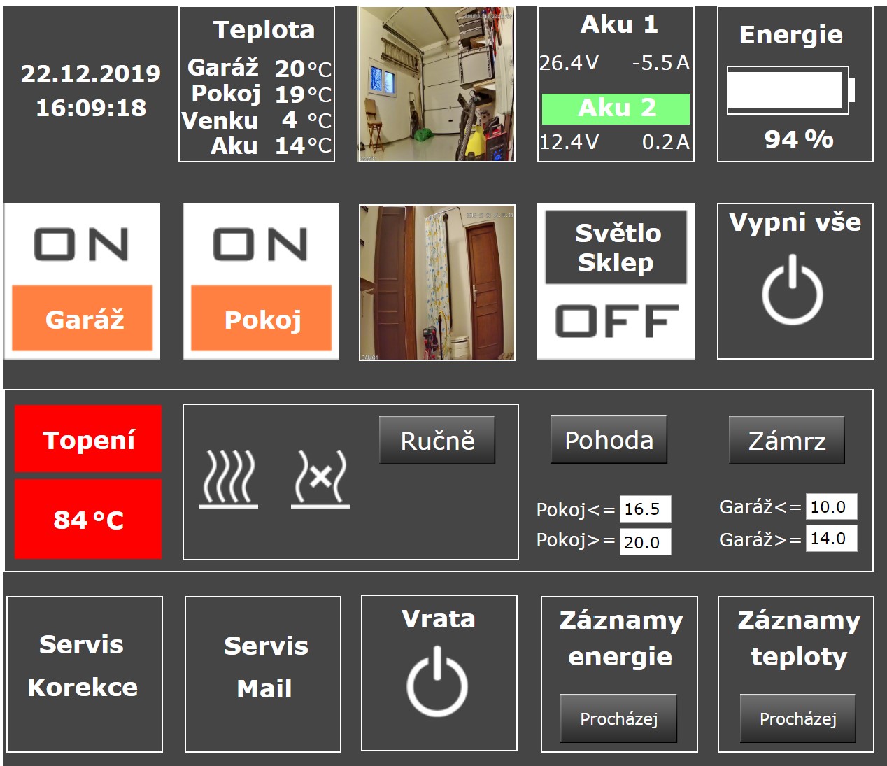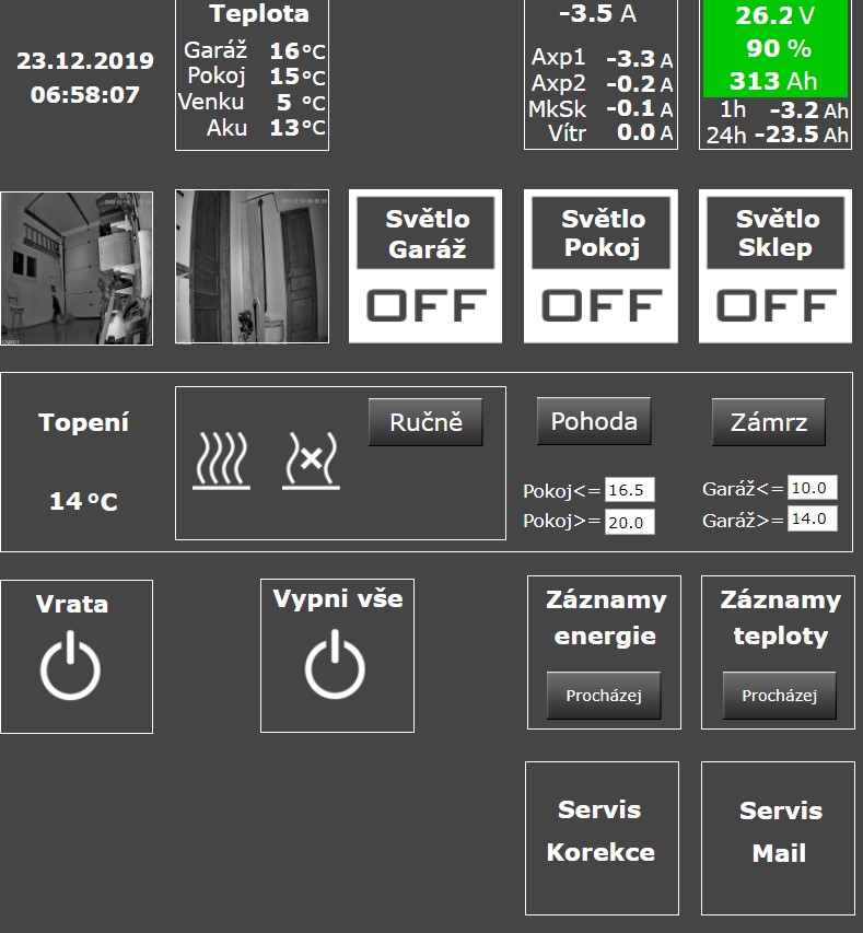 li ion 350 Ah@58V, venus@rpi3+, celkem instalováno 12,36 kWp, 460 m.n.m.