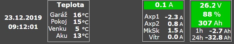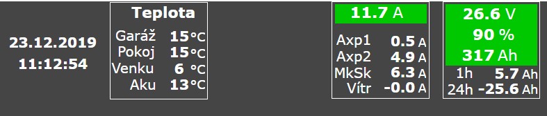 A teď přemítám, jestli to vlastně neudělal ten Axpert schválně jako dárek k Vánocům - poustevna je totiž skutečně díky tomu optimalizovaná jak nejvíce to asi momentálně jde - Aku1 a Aku2 paralelně, všechno slunce do nich a jedna klidová spotřeba Axperta. Podpis a Foxtrota by to chtělo tedy změnit, ale to počká, než se rozmyslím, co bude poustevna v 2.0 - že by opravdu oddělit v jedné větvi měnič a regulátor