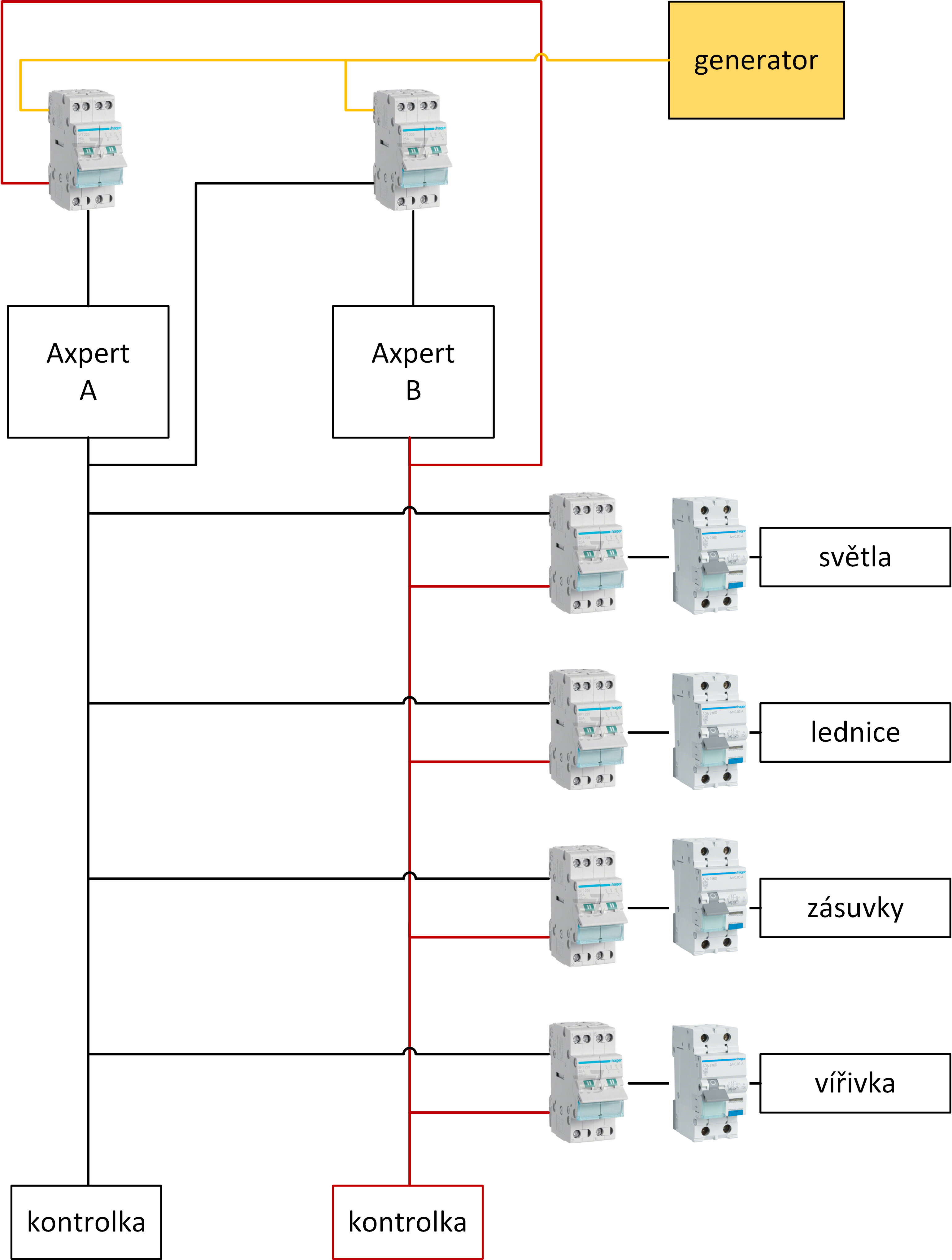 . Ta výstupní přepínací inspirace je také dobrá, protože to umožňuje využít výkonu obou Axpertů, ale nevím, mám pocit, že už jsem za elektrikářská hejblátka utratil dost a nabourává to jakoby onen plný zálohovací modus (3 kW should be enough for everybody).