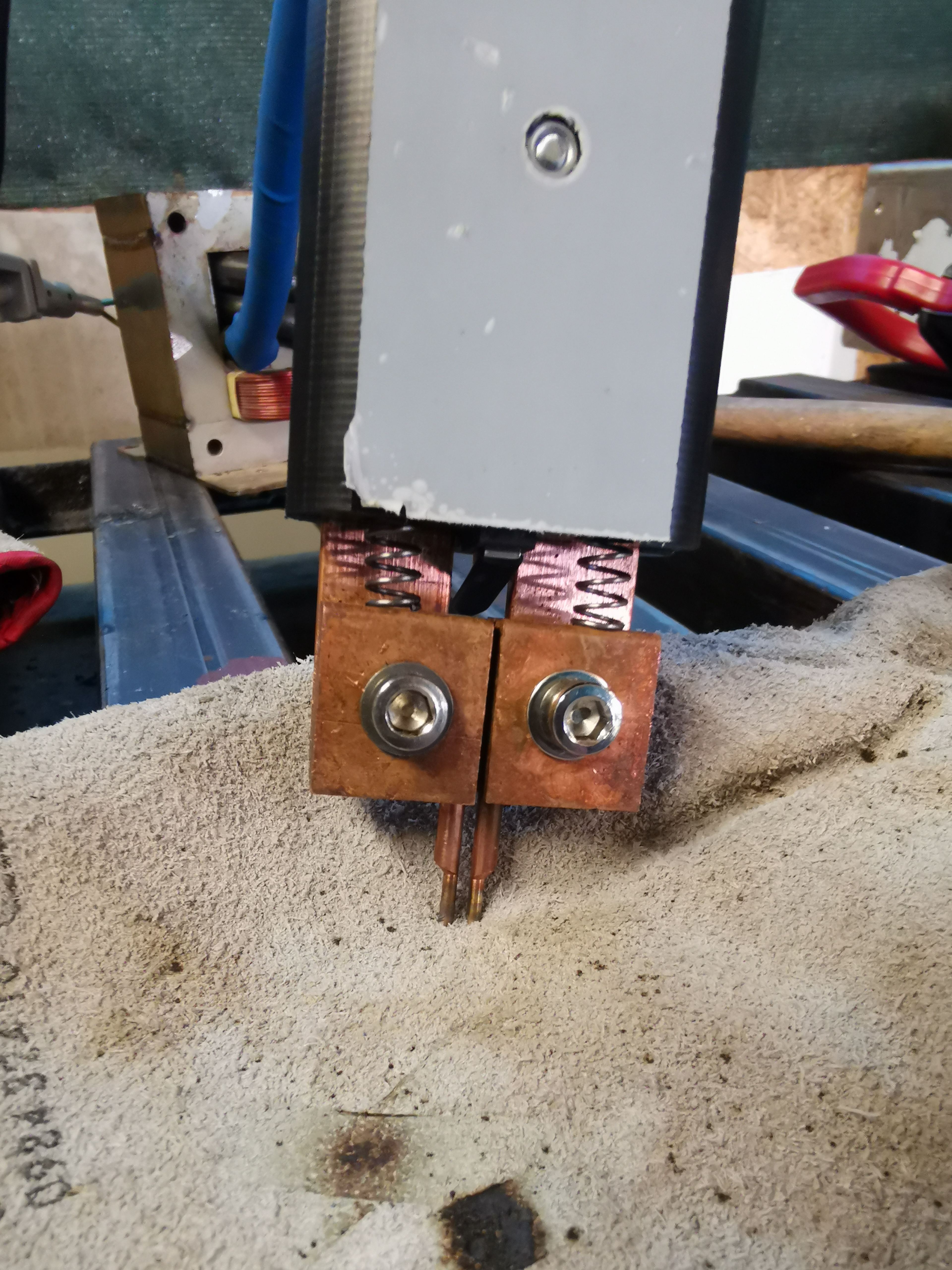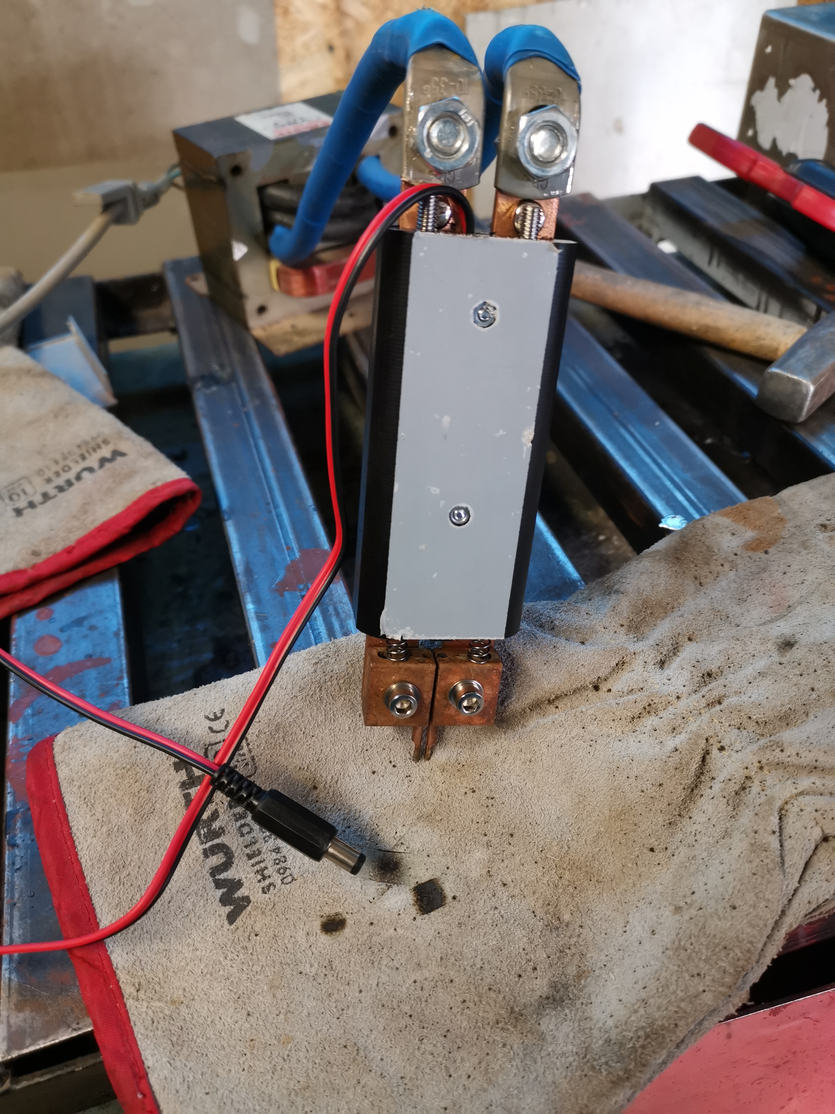 Trafo na bodovacku hotové vošiel tam vodič zo zváracie ho kábla 50. Napetie naprázdno 18V, skratovy prúd 850A Koncovka z Číny, da sa nastaviť pritlak a potom zopne pulz len čakám na ovladuciu dosku.
