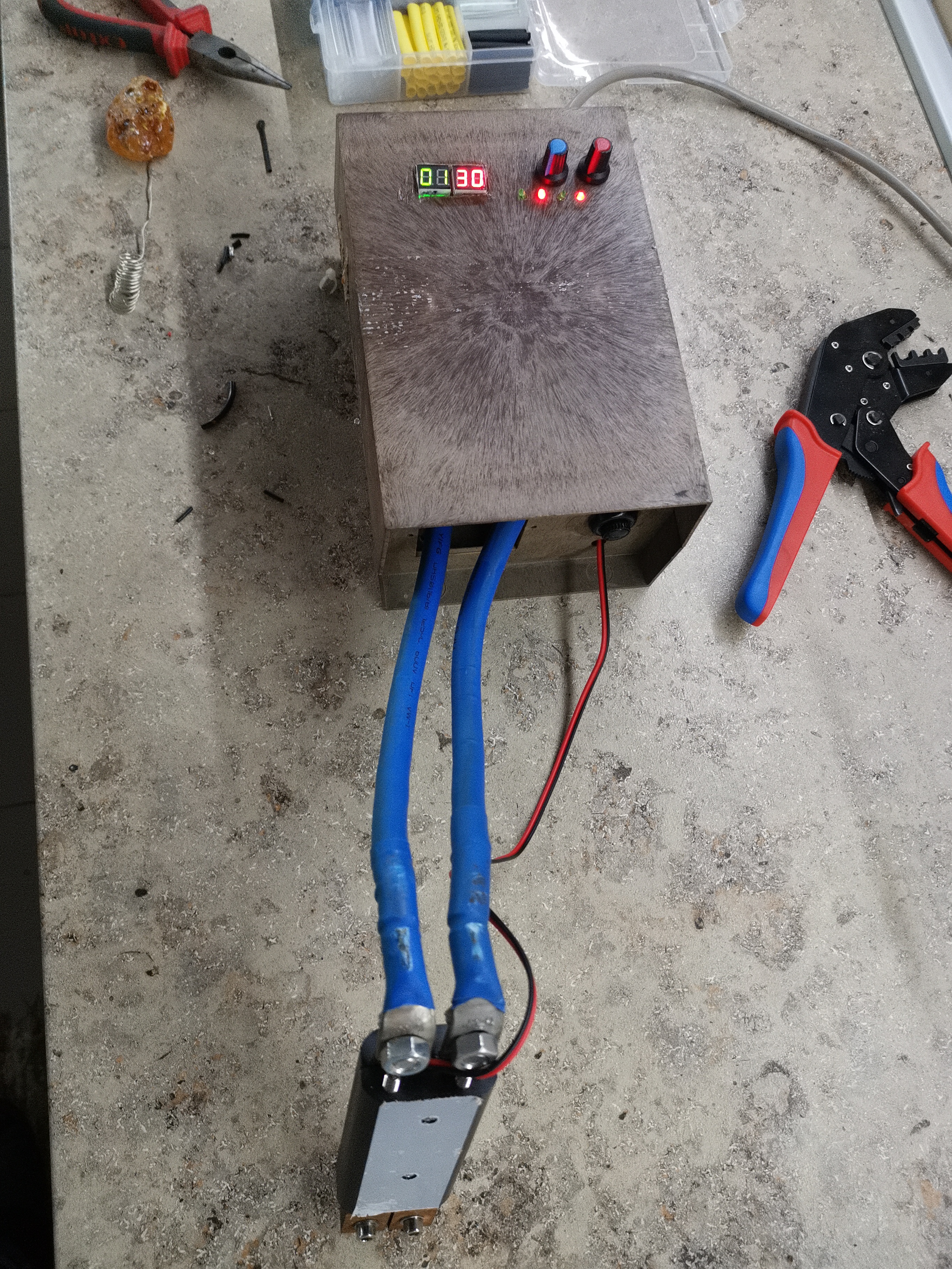 Bodovacka hotová, využitý materiál co bol doma. Boduje dobre 0,1mm, 0.2 mm dá tiež ale už sa hreje článok.