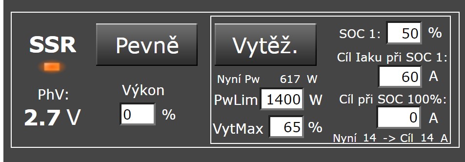 Mezitím jsem zprovoznil k plné spokojenosti přesné měření včetně SOC (https://solarforum.cz/viewtopic.php?p=16769#p16769), takže jsem opravdu přešel na úrovně SOC, jak v příspěvku zmiňuji. Vše zůstává, jak je popsáno, ale vezmou se určité úrovně SOC, nikoli úrovně napětí. Pokud se SOC měří přesně (a nic lepšího než INA228/229 jsem zatím nenašel), má to výhodu, protože napěťové úrovně kolísají se zatížením baterie, což při větší zátěži představuje regulační zpětnou vazbu, jejíž užitečnost je na zvážení.
