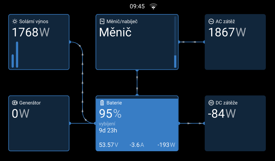Tie naše čínske kombi bedne majú tú výhodu, že majú bezproblémový bypass v sebe, a tých pár wattov čo za deň zoberú, to vždy zo slnka príde. Batérie sa teda z panelov udržiavajú nabité. V zime je ale vhodné prepínať na grid povedzme pri 30%, aby bola aspoň nejaká rezerva na výpadok verejnej siete.