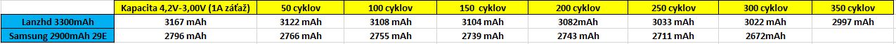Tak Lanzhd 3300mAh sa dostal na 200 cyklov a ešte stále to vyzerá ok. Strata je pod 3%. Dajú sa už robiť predbežné uzávery že šetrné zaobchádzanie...max 4,V a min 3,45V (určte aj 4,05V-3,35V) + prúd 0,2C, má blahodárny vplyv na životnosť.