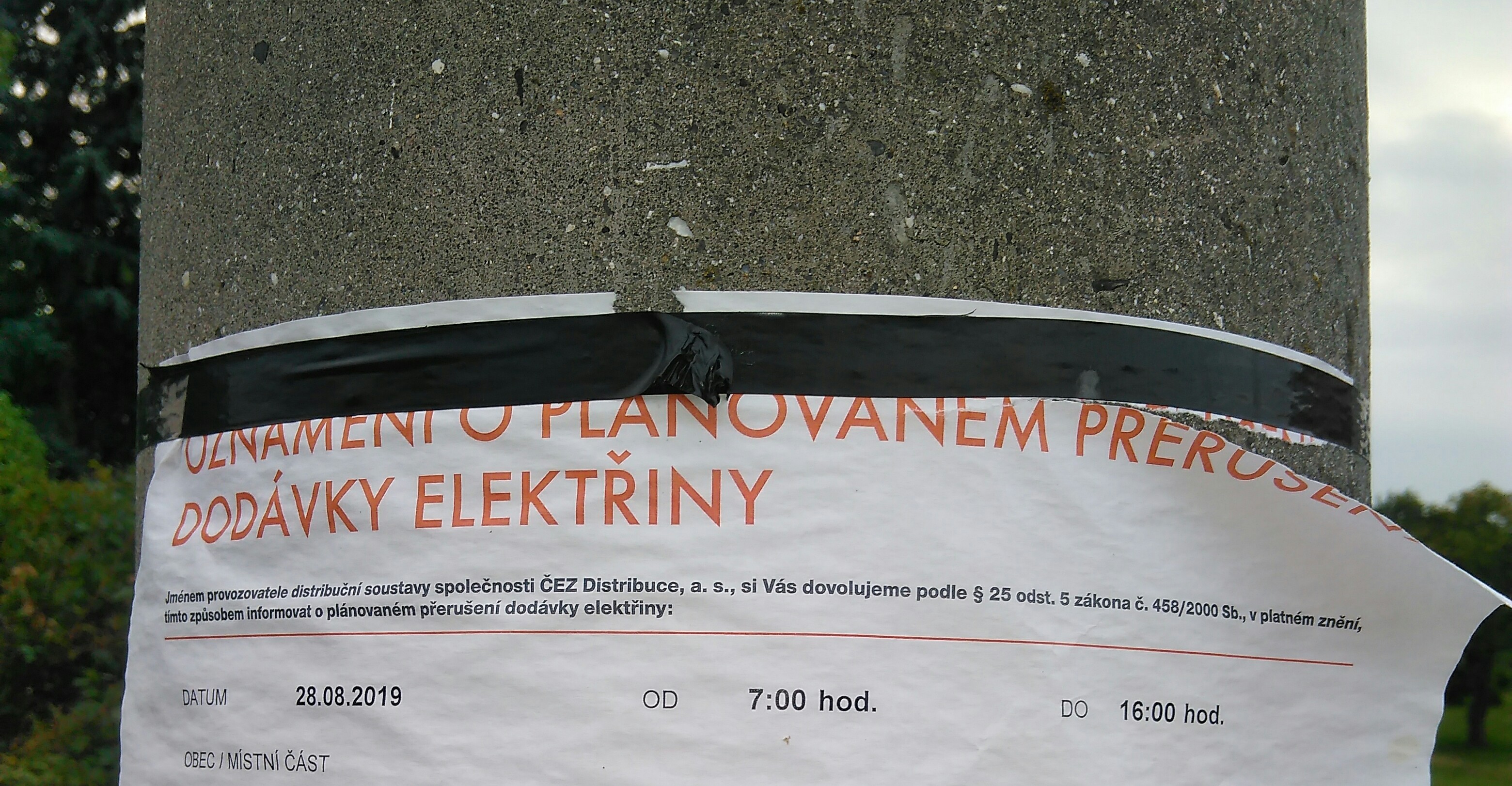 Stejně si myslím, že ČEZ zase kecá. Slibuje, že to vypne na celej den, ale určitě to nakonec budou jen tak dvě hodiny. Minulý týden byl prý výpadek neplánovanej, ale to jsem se dozvěděl až dnes.