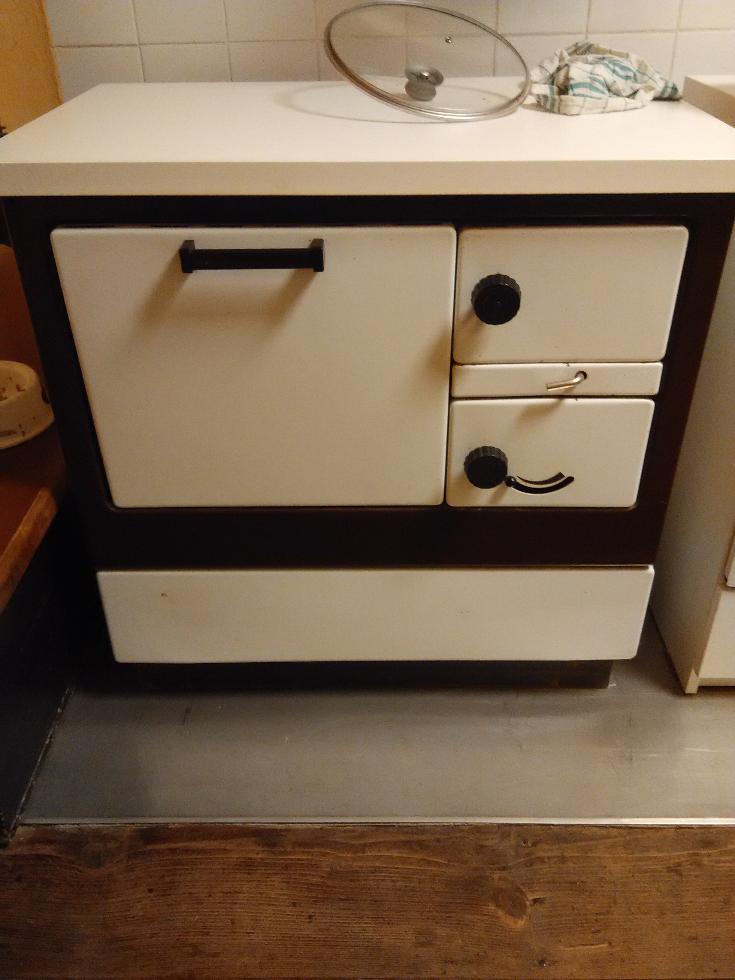 Tohle je letní úprava s odkládací deskou, v zimě se topí každý den. Takže se na tom i vaří.
