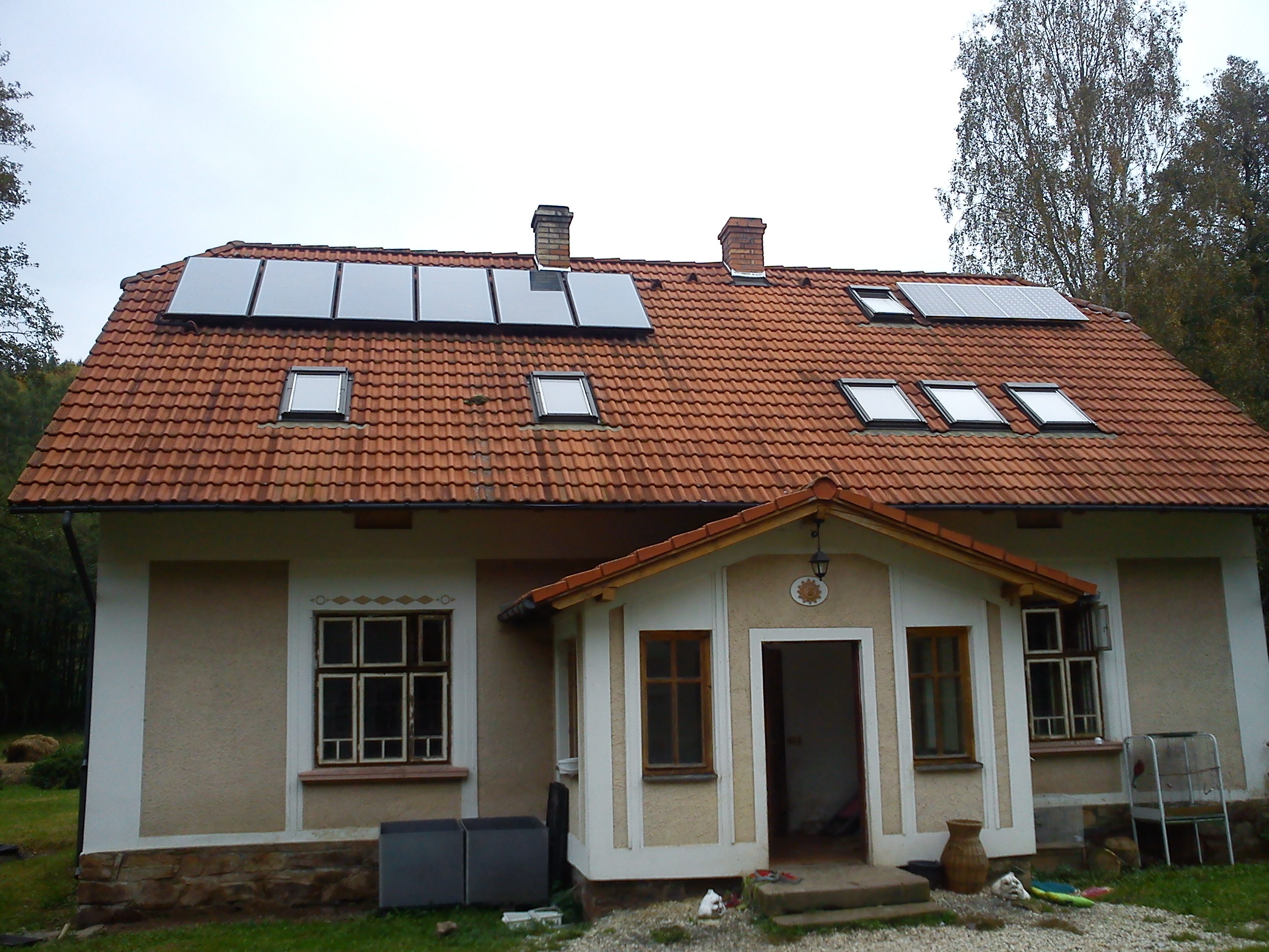 Tato 1000Wp solární elektrárna na statku v Komorci u Prahy-východ byla postavena před 10 lety a nyní potřebuje odbornou pomoc s testováním a případnou výměnou gelových baterií. Systém pracuje na 24 V s měničem na 230 V a doplňuje ho naftový generátor a malá vodní elektrárna. Ve fóru se diskutuje o možnostech vylepšení, programování Siemens PLC a zkušenostech s provozem bez přípojky elektřiny.