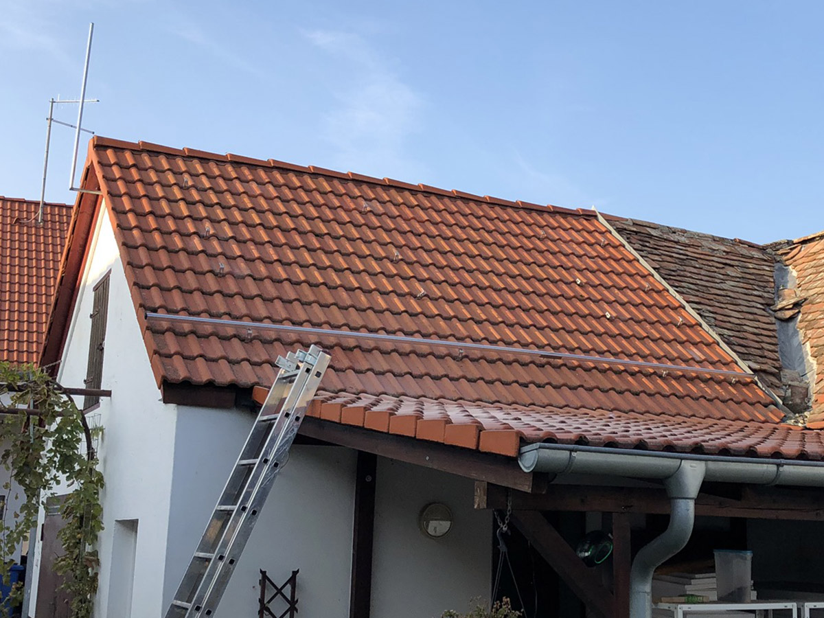 Zdravím, tak dnes měl konečně kamarád pokrývač čas, tak jsme stihli namontovat 16 háků vč. zabroušení, a upevnit první profil, celkem tři hodinky práce, pokračování až zas bude čas.