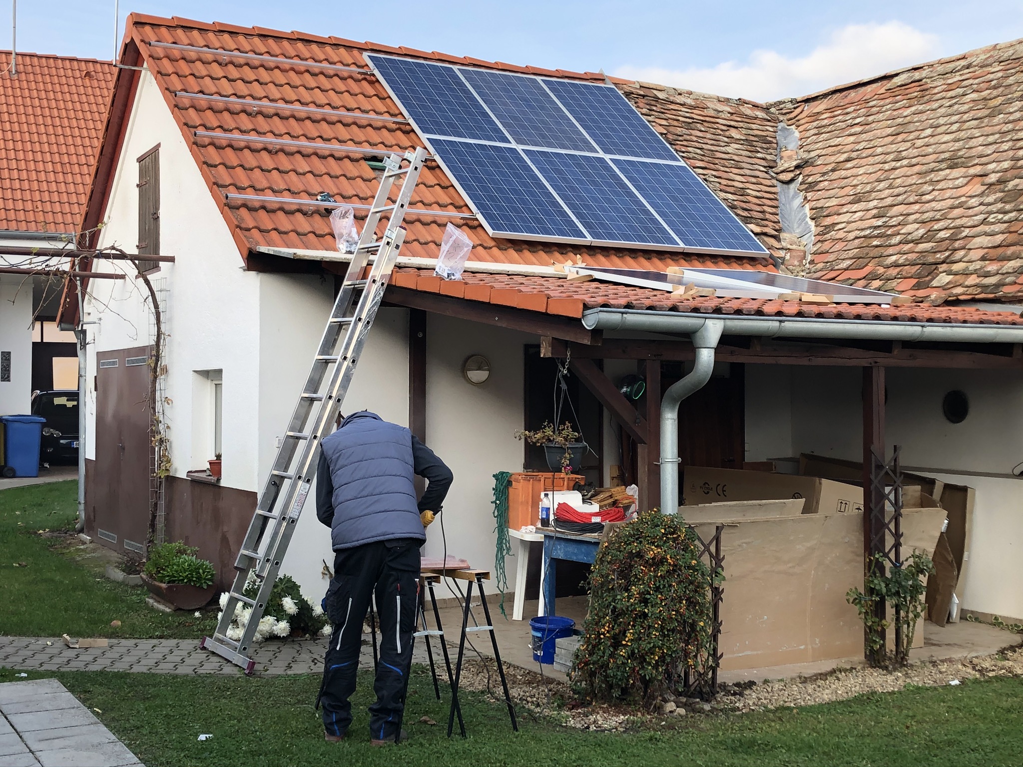 5,5kWp - 4x Solartec mono 180Wp +¨6x IBC 155Wp poly + 10x Solea 170Wp mono + 6x Husinage HSG 190Wp + 6x Calyxo 70Wp amorf vertikálně (JV), 2x ZN ShineSolar poly 250Wp + 2x 260Wp poly (JZ), Epever LS 3024B, Epever LS 2024B, MakeSkyBlue 20A, eSmart 3 - 60A, 19 kWh Li-Ion, Axpert MSXE PF1, 24V/3,0kW, Axpert MSXE 24V/2,4kW.