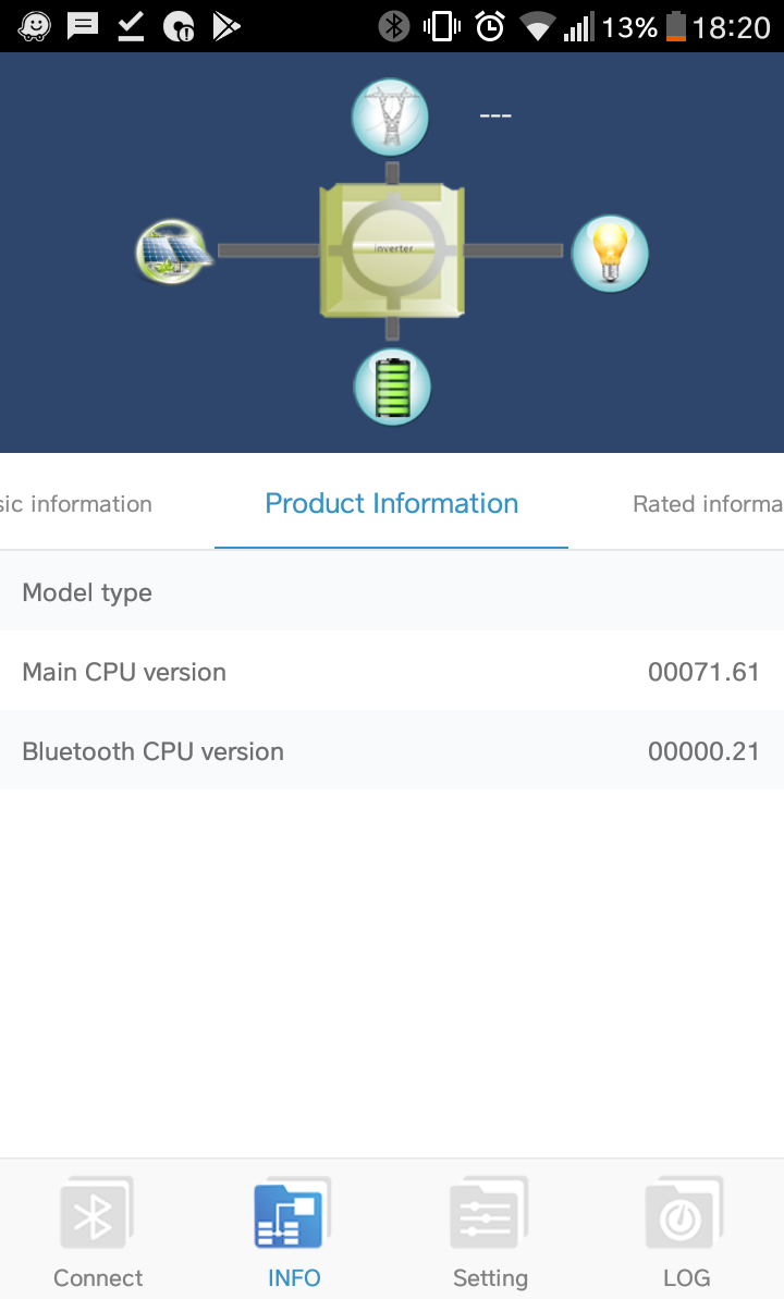 Ahoj Diablo info o mojim fw je zde na menici pip5048mk. Tvuj najdes po pripojeni v zalozce product info.diablo007 píše:Ve watchpower v mobilu sem ho nenašel a na displeji taky nevím jak se k němu proklikat tak naved
