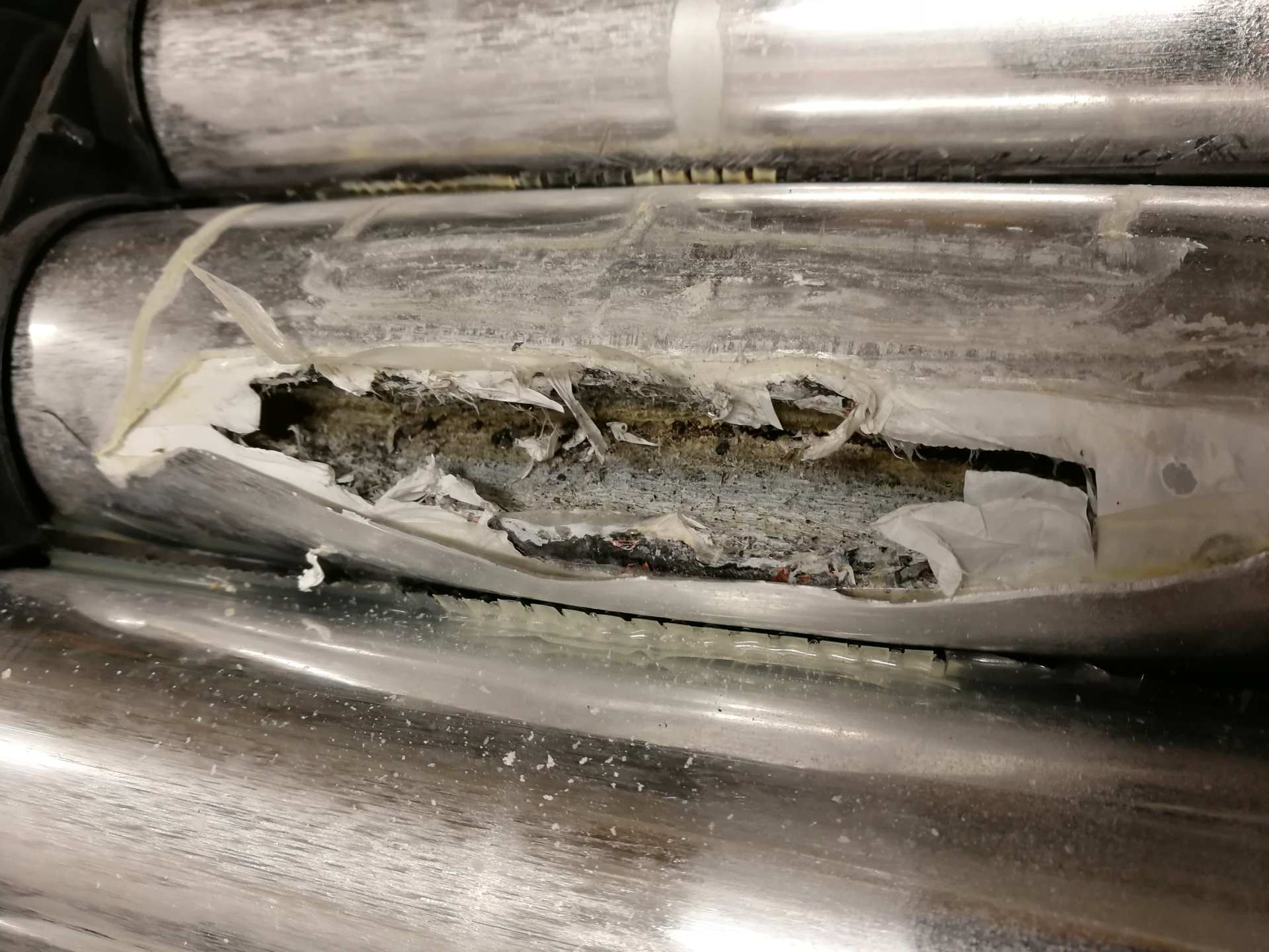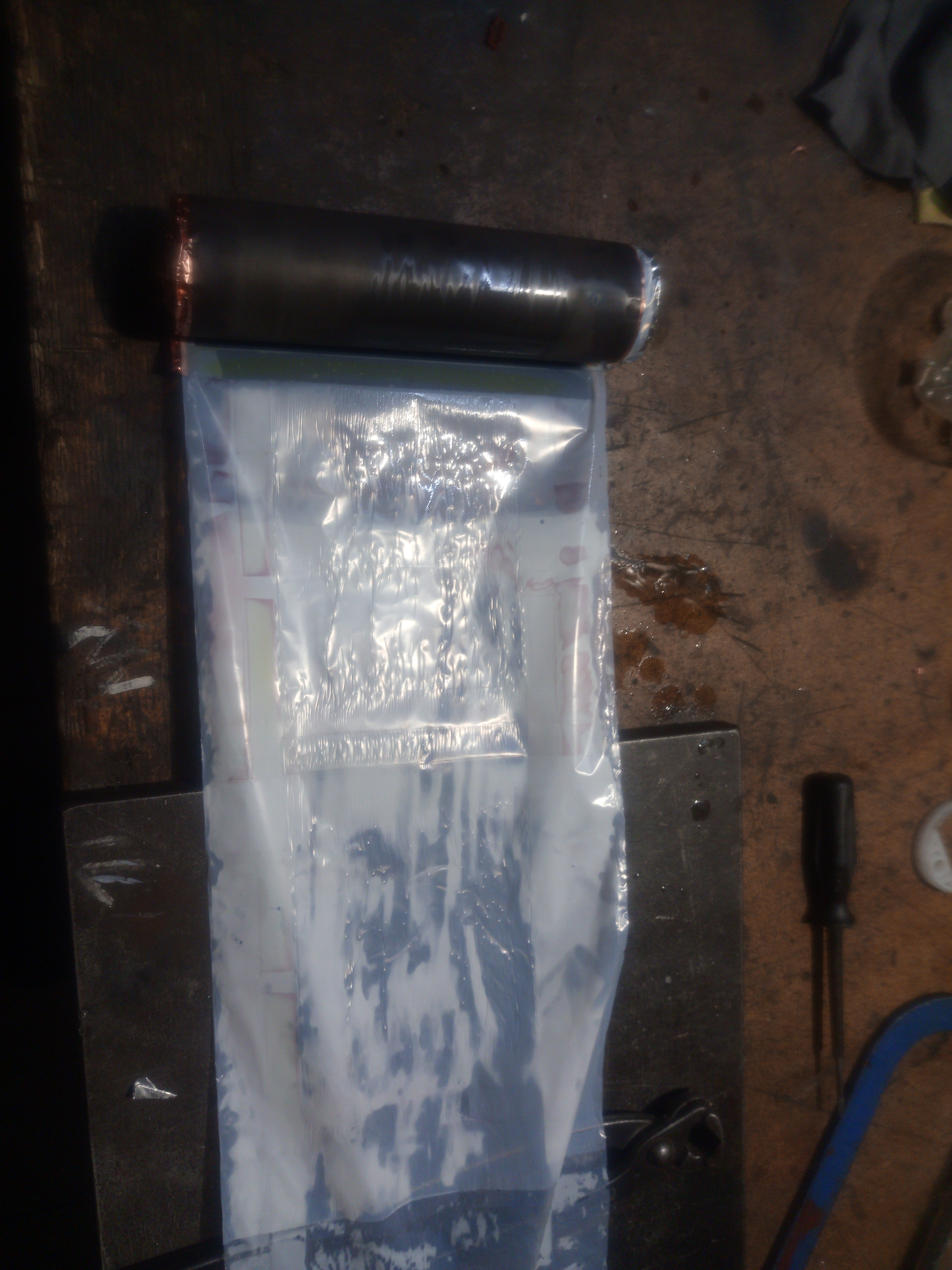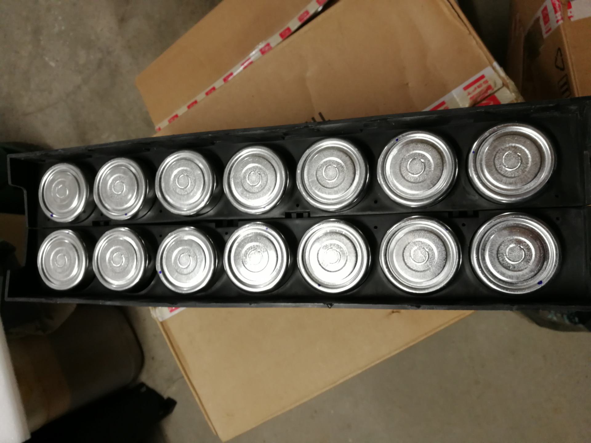 To je váleček z podbitého boxu a opravdu nešel nabít ani pomalu ani zvědavostním šokem(jen ten jeden z boxu).Ale spečený svitek nemá v sobě,tak taky netuším proč nešel nabít,možná od spodu zafungovalo odpojení AL části.Pak tu mám ještě jeden váleček s prooxidovaným obalem bez elitu,asi špatný svar laserem na víku.Chybí mi rozebrat ještě deset boxů,ale ty už mají napětí OK na svorkách,takže celkem dobrý výsledek z 476ks válečků dva špatné.Podbité boxy jsem měl tři a postupným nabíjením vypadají OK,napětí po ustálení nepadá.To vydlubování tmelu a vyloupnutí dna je strašný opruz