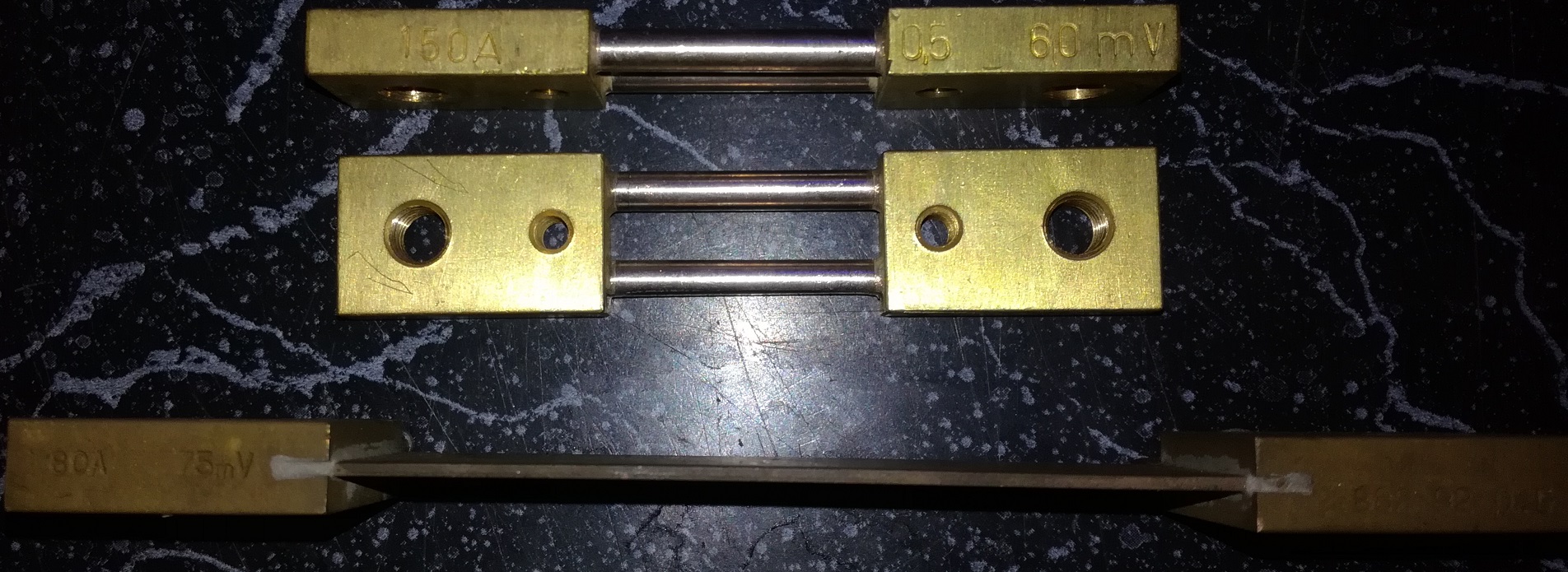 Nabízím k prodeji bočníky 150A/60mV a 80A/75mV s přesností třídy 0,5 z demontovaných zdrojů před ekologickou likvidací. Cena je 100 Kč za kus plus případná pošta. Preferuji osobní předání v lokalitách Chrast, Chrudim, Pardubice, Praha a Brno. Všechny bočníky již byly prodány, ale při dalším dostupném množství je opět nabídnu.