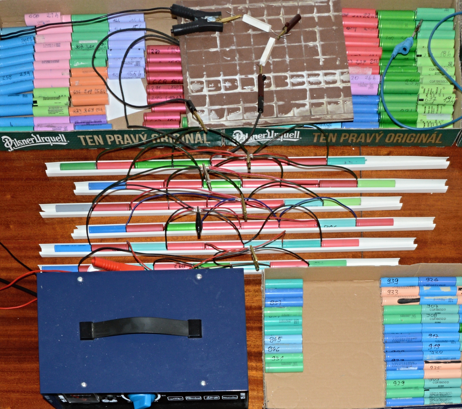 Správne by bolo urobiť s každým kúskom pár cyklov a až potom merať kapacitu a následne zostaviť pack. Je to však strašne prácne, nerobím to. Keď sa však poriadne zoradia do packov, výsledok je neskutočne stabilná batéria. Multimetrom som na niekoľko mesiacov skúšanej batérii nenameral rozptyl ani 0,01 V ! Takže v poho. Bude za tým úspešná diverzifikácia vlastností článkov pri ich zoraďovaní.