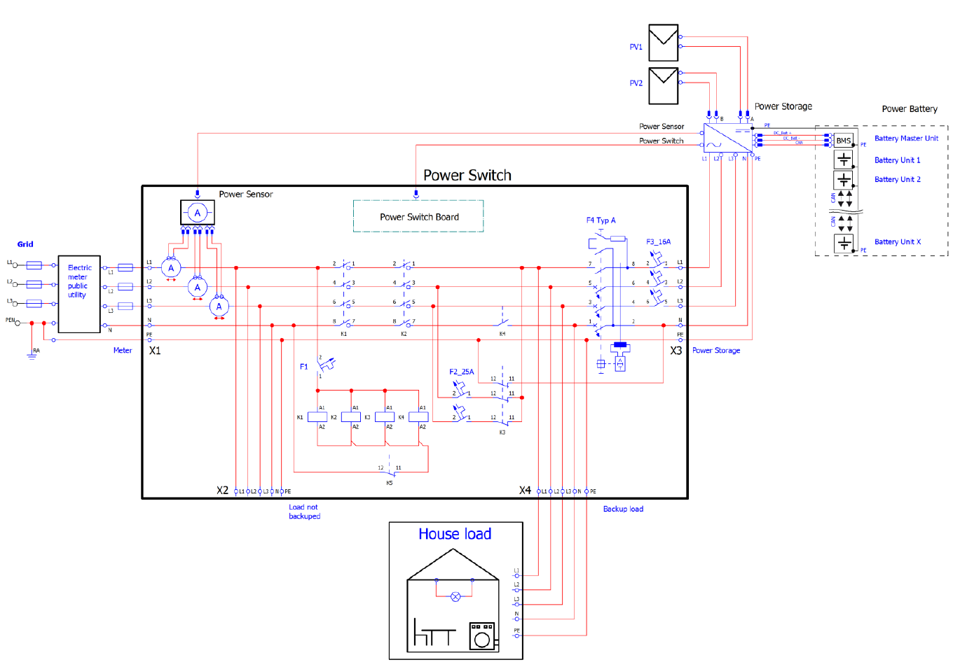 2) Navíc umí při výpadku DS spojit svoje tři výstupní fáze do jedné a poskytovat tak výkon 1x6kW. To je v backup režimu mnohem lepší, než 3x2kW. Propojení všech okruhů v domě a jejich napájení 1x6kW pak zajišťuje právě ten nabízený rozvaděč "RCT Power Switch".