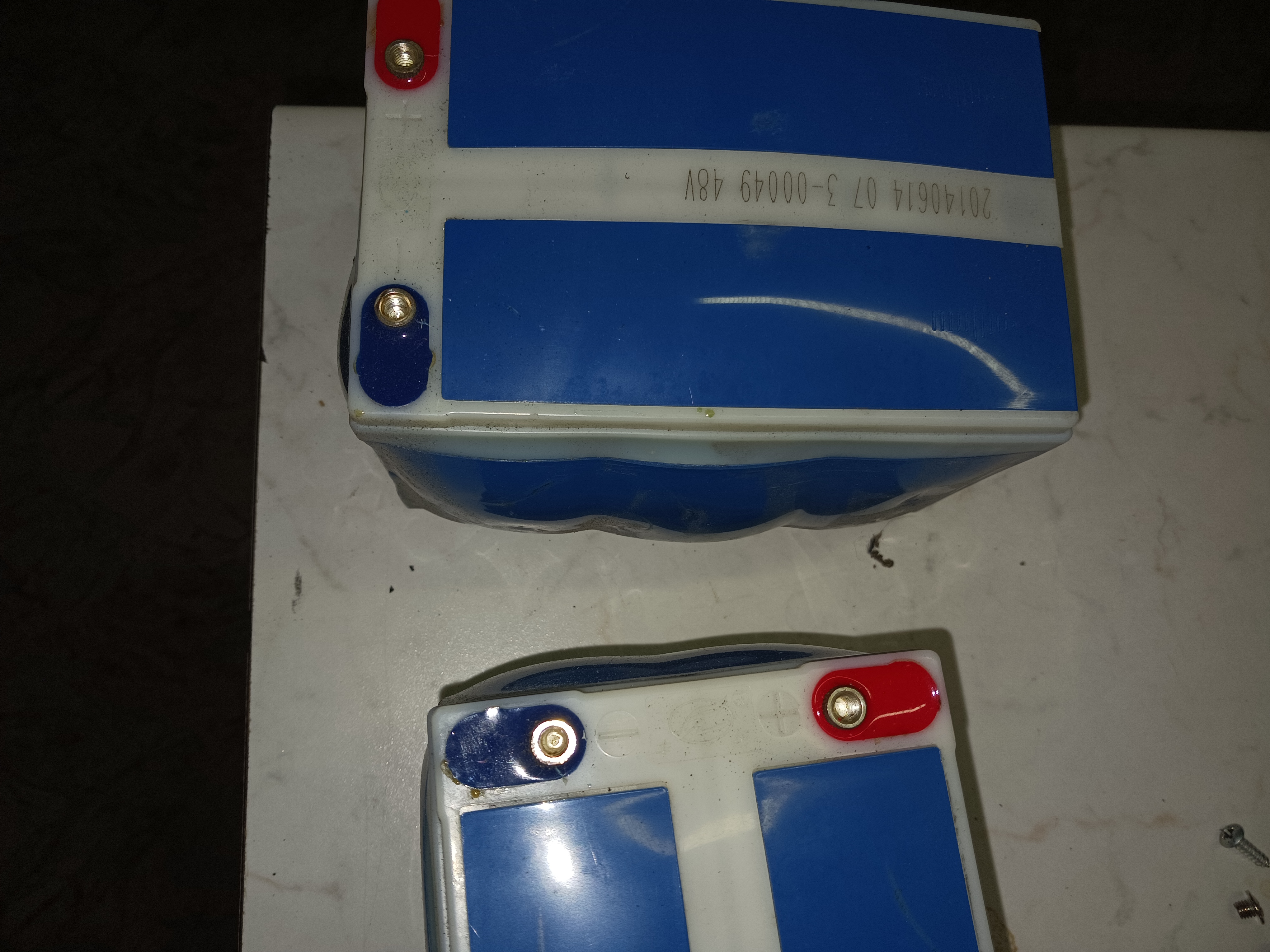 Oloveny baterie byly nafouknuté jak balón, nechápu že neexplodovaly. Musely mít při nabíjení hodně přes 100° protože se zdeformovala i krabice. Dnes jsem tam připojil provizorně Lion články a ampermetr. Je tam regulátor s nápisem 250W. Po rovině byl proud v jednotkách amper. Při rozjezdu a do kopce se zastaví na 21A, to je 1000W. V porovnání s el.kolem stejného výkonu jede mnohem líp a bez šlapání. Šlapat se prakticky moc nedá, šlapky jsou velmi nízko nad zemí. Nechápu že to tak pěkně jede a neshoří kabely. Dráty od baterky jsou max. 0.75mm2