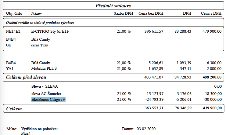 Wallbox muzete dostat v zakladni cene vcetne instalace a pokud ho nechcete, odectou vam 30 000,-Kc jako "EkoBonus Citigo iV". Vysledna dnesni cena za nove iV vypada taktodiablo007 píše:Wallbox nekupujete jako příslušenství k autu u škody?
