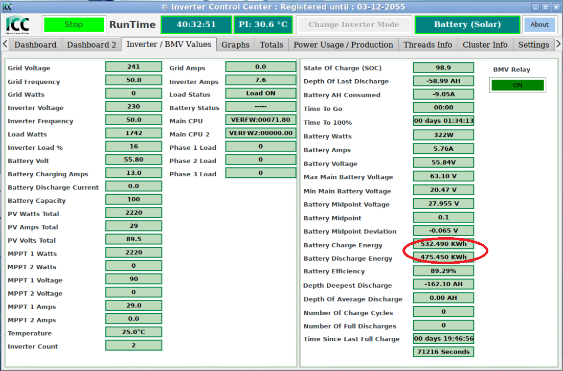 16kWp/JZ-50°/20xChaori 230 ,JV-90°/8xLeapton 650 + <JZ-90° /15xJAsolar / Mono 385, regl Midnite Classic 150<89A> , 1x EASUN <80A> a 1x EASUN <100A>,baterka 17s 54.4VDC LFP4/784Ah<uloží 42kWh>,ŠKATULE 11kW
