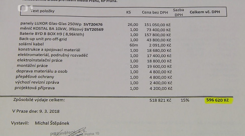 Tazatel není ochoten stavět FVE svépomocí,žádá řešení na klíč.Počítá s dotací a legálním připojením hybridního střídače k DS.Je ochoten dát 9700euro ze svého a počítá s +1700euro dotačně. Zatím byl ochoten přistoupit za tu cenu na: