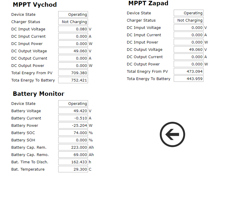 Pozn. - Tj. nevytěžovat z baterek (mer[29].v_lsec může být kladný i záporný). 1 A je "zaokrouhlovací hodnota nahoru", a nakonec, 1A by měl do baterek téci při 400Ah i při nabitých baterkách, ne :-)?