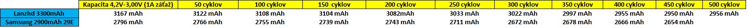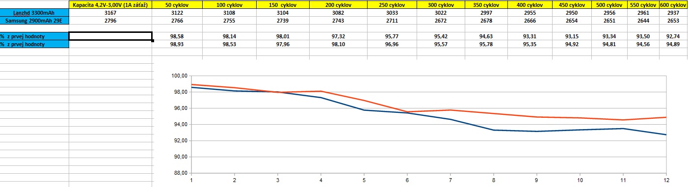 Samsung 2900 sa dotiahol na 450 cyklov ako aj Lanzhd 3330.. výsledok po 450 cykloch je