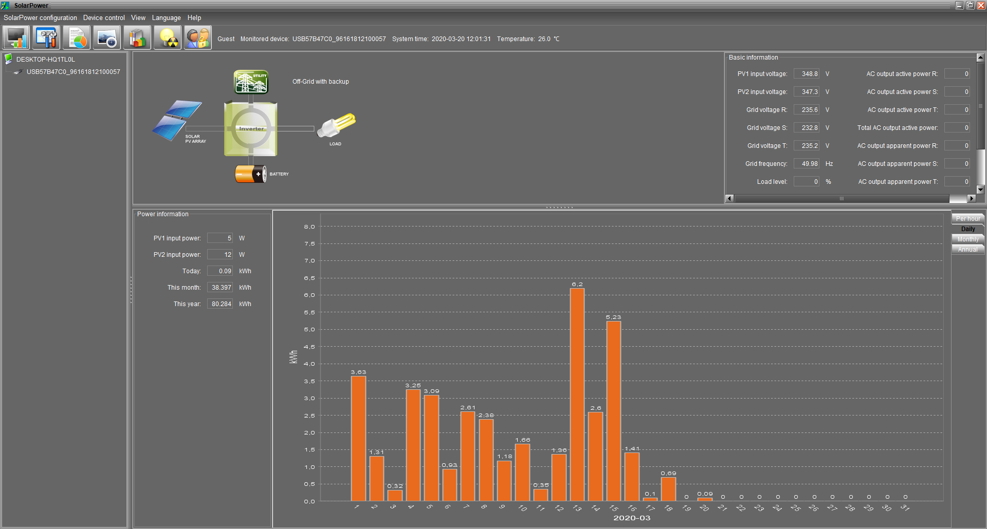 S tou spotřebou je to složitější, pokrývá ji z panelů nebo z akumulátoru, pokud se akumulátory vybijí tak se měnič vypne a běží jen monitoring cca 7W. Více třeba zde:Infinisolar10 píše:Rád bych se ještě pozeptal, jak je to s vlastní spotřebou 10kW Infinisolaru. Uvádí se s spotřeba až 165W v součtu na všechny 3f, což by představovalo šílených 1,4 MW za rok. Dle distributora je ale tato "nutná" energie pro napájení střídače částěčně využita na spotřebičích /pokud je alespoň nějaká stálá zátěž na výstupu/. Mátě prosím někdo změřeno, kolik energie je ve výsledku zpětně využito za vlastní spotřebou? Pro příští zimní období mám v plánu odpojit na cca 2 měsíce baterie. Otázka je zda nevypínat i střídač, když výroba některé dny po odečtění spotřeby v řádu do 2kWh.