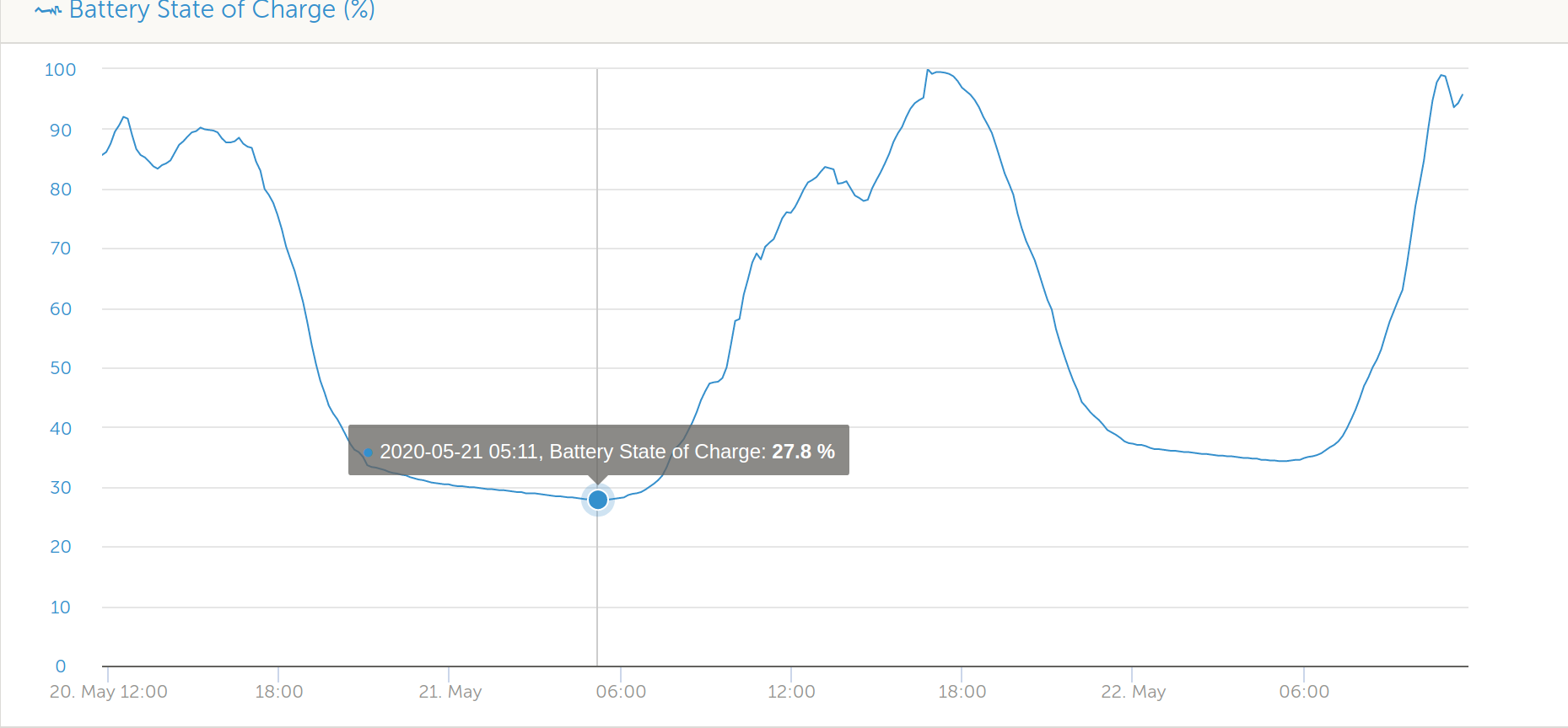 Ideálně bych tak potřeboval, abych mohl nastavit cílové napětí pro vytěžovač např. na 26.6 V a napětí pro float pro regulátory o dost výše, řekněme i trochu nad 27V, aby regulátory měly napěťovou rezervu a nechodily zbytečně do floatu. Ale to bych musel mít stoprocentní jistotu, že vytěžovač vše vytěží a s mou měkkostí baterek zůstane u těch 26.6. Jenže tu jistotu úplně nemám a nechci baterky trápit, tak nastavuji absorbci/float napětí na 26.7 V a pak jen koukám, jak vytěžování/dobíjení není úplně optimální.