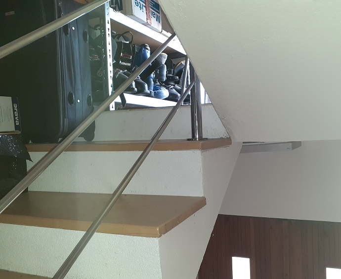 Pod medziposchodím kde sú baterky je dalšie medziposchodie kde sú vstupné dvoj-dvere z exteréru . vid foto 1.