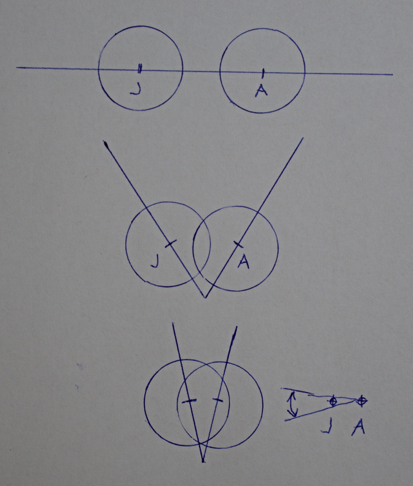 To platí do nejakého konečného rozmeru, nad týmto rozmerom získava prevahu vplyv, ktorý som popísal vyššie v bode 3/. Aby som bol zrozumiteľný, pripájam vysvetľujúci obrázok. Na ňom vidno premietnuté do roviny konkrétneho dizajnu letovacej špičky, ako drôt pri ohnutí ohrieva sám seba, zvýraznené pre body A a J. Pri približovaní dvoch bodov nastáva ich postupne stále prudší ohrev absorbovaním tepla, vyžiareného z náprotivného bodu. Pomer prijatého tepla k vyžiarenému zodpovedá veľkosti vyznačeného uhla.youda píše:Proč se očko hřeje nejvíc zrovna u středu už je asi jasné - nejvíce do toho vstupuje odvod tepla.